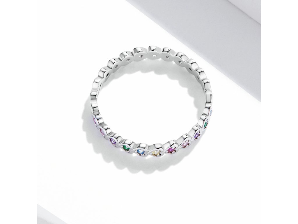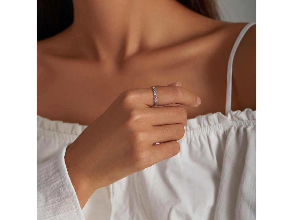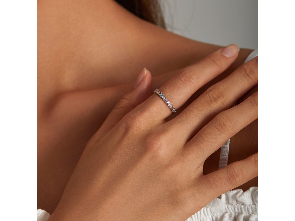 Elenys stříbrný prsten Pole duhových srdcí