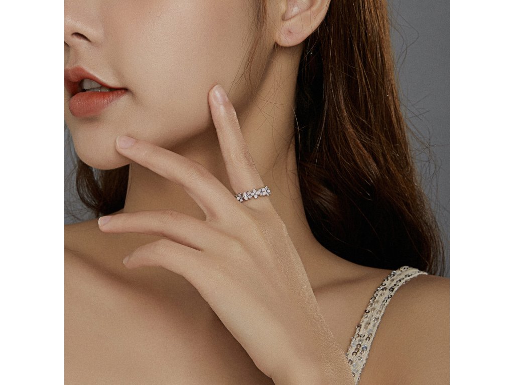 Elenys stříbrný prsten Pole růžových květin