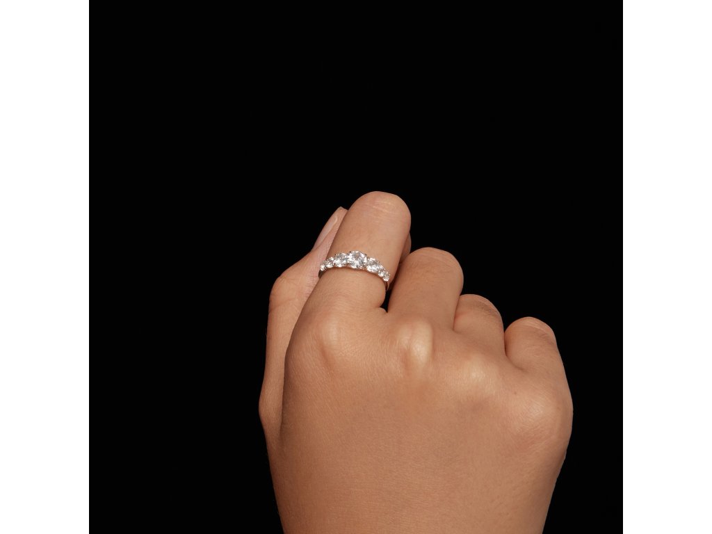 Prsten jsem si vybírala pro sebe a musím říct, že mě naprosto nadchnul. Moissanity krásně odráží světlo – mají jemný třpyt, nepoznatelné od diamantového efektu. Působí velmi přirozeně a luxusně.