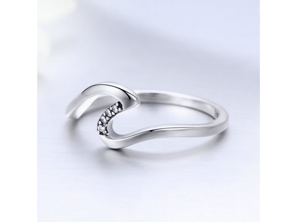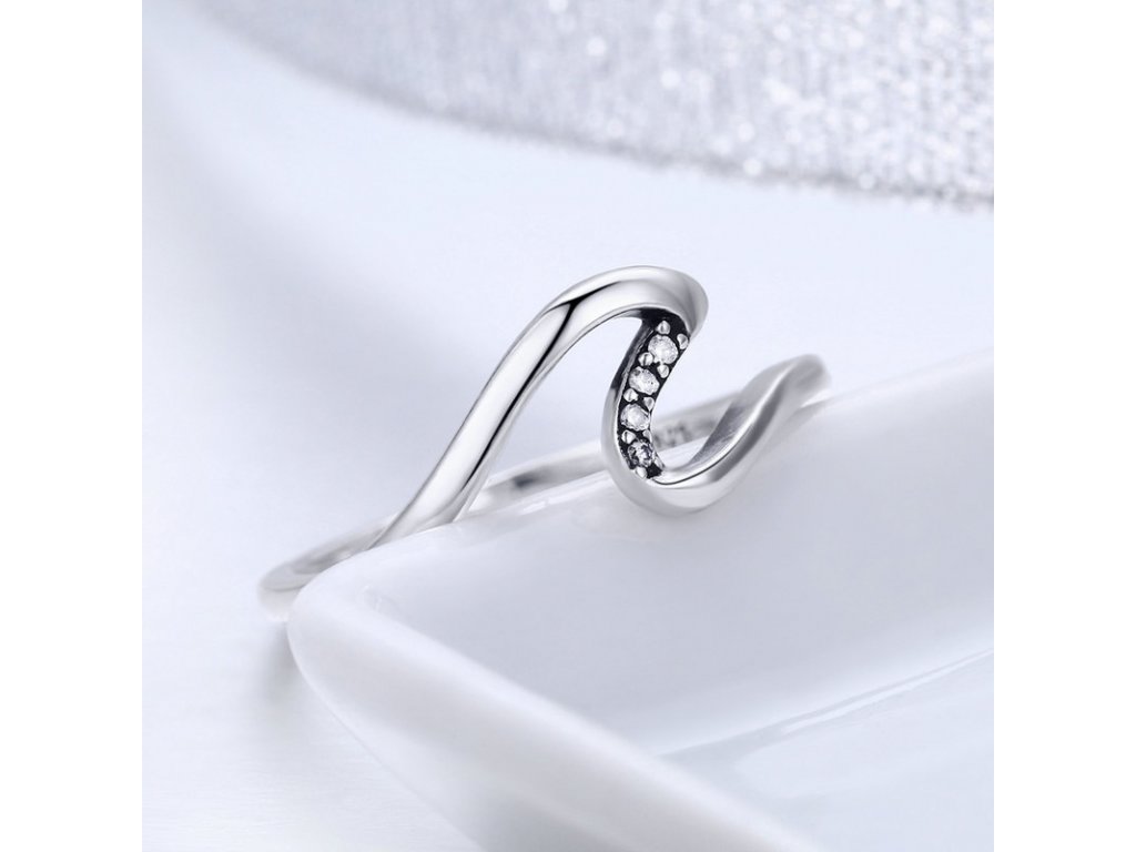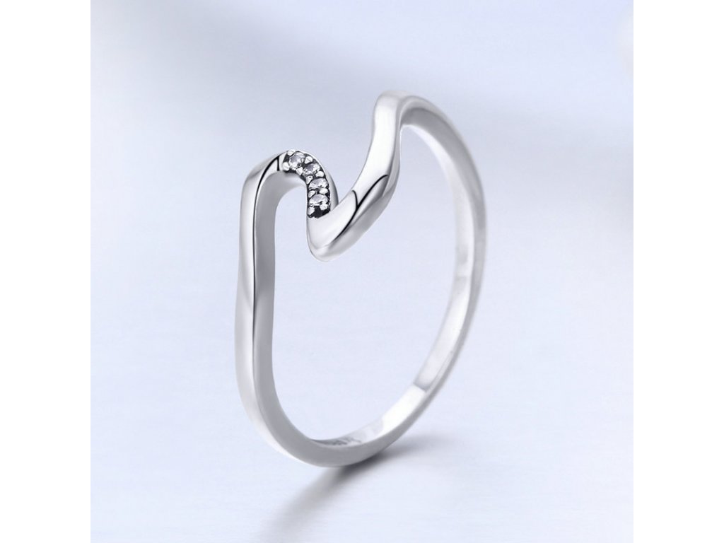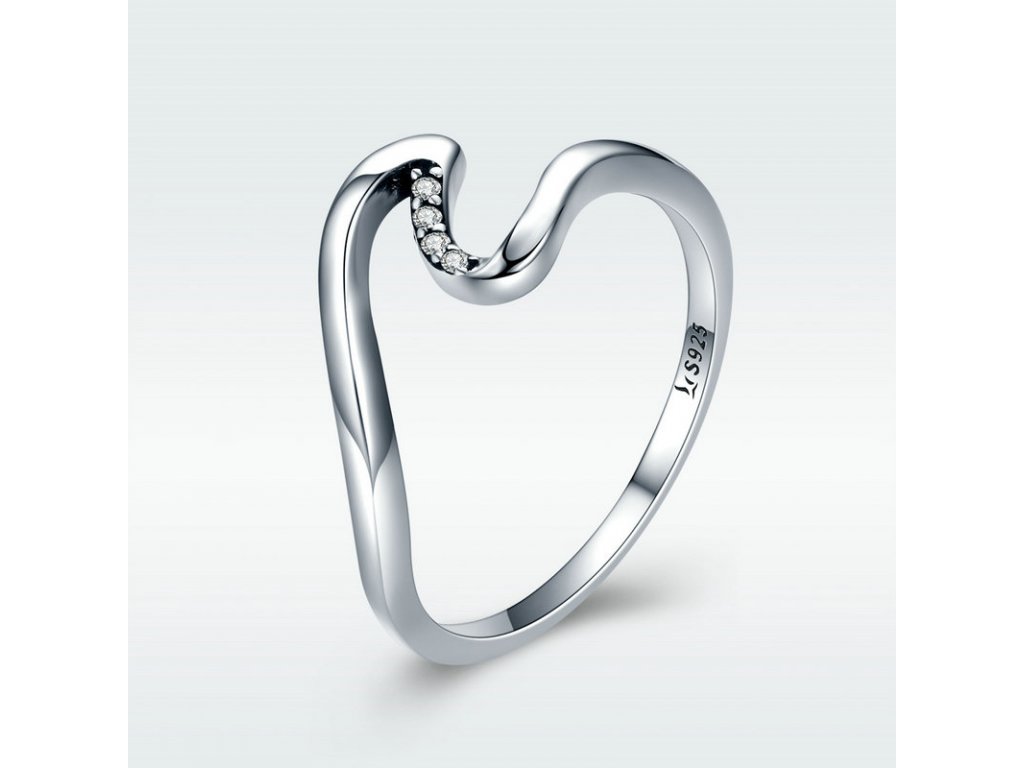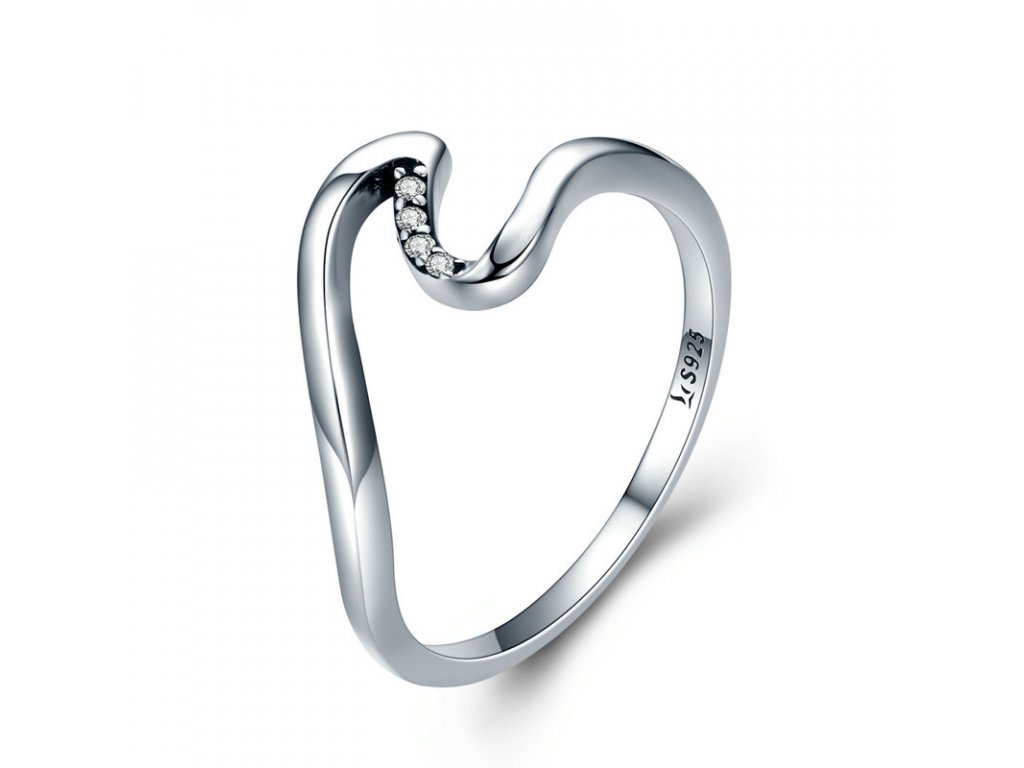 Stříbrný prsten v designu Třpytivé vlnky zdobený čirými zirkony. Originální design prstenu, kvalitní zpracování a materiál, ručně dohotovené. Stříbro ryzosti 925/1000, zirkony. 3x platinováno pro vyšší odolnost a lesk. DODÁVÁME BALENÉ V DÁRKOVÉM BALENÍ - ZDARMA.