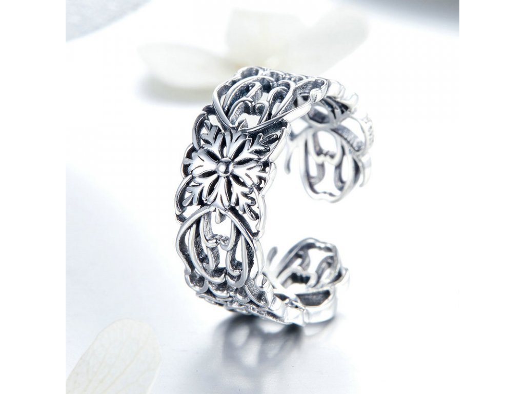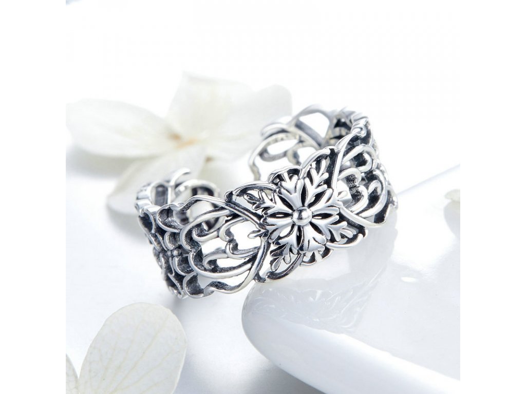 - Krásný a propracovaný stříbrný prsten v designu vintage květiny. Originální design prstenu, kvalitní zpracování a materiál, ručně dohotovené.