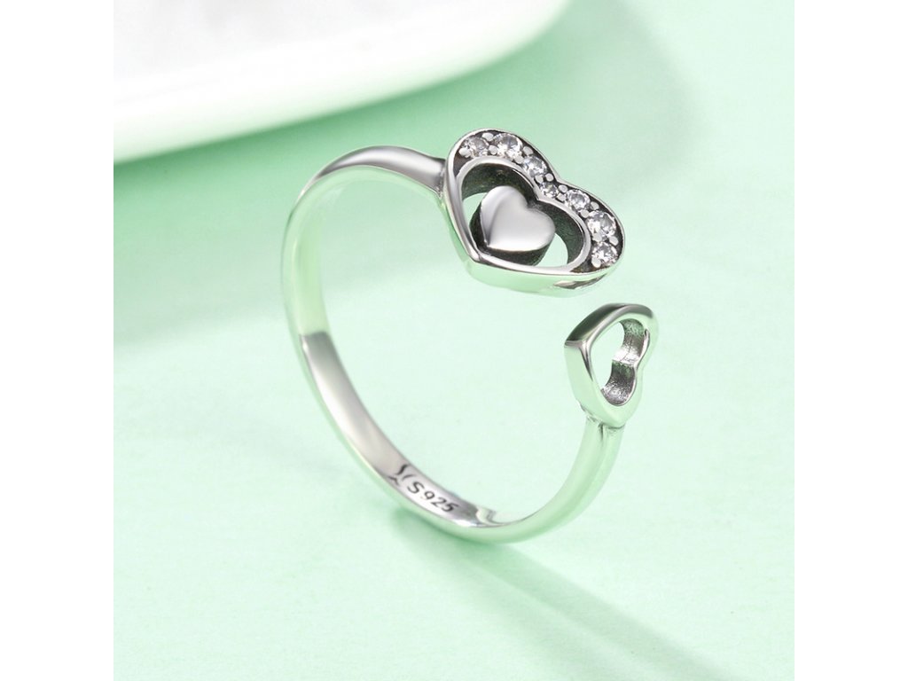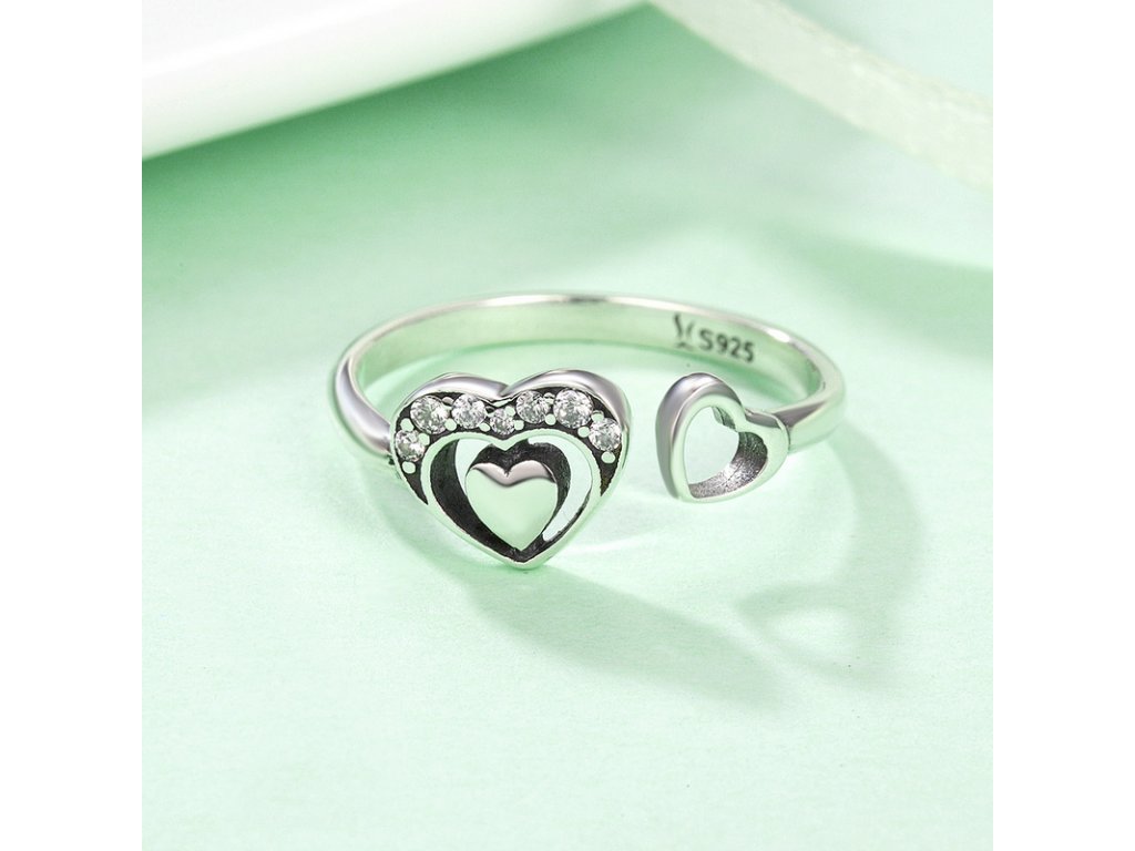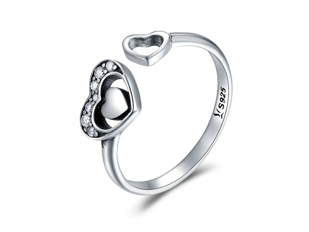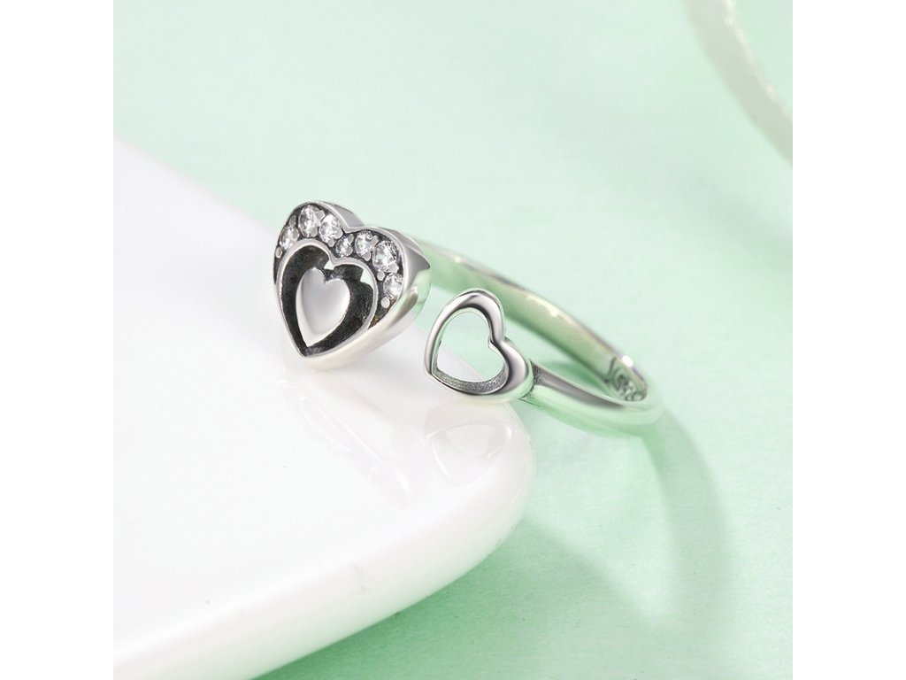 - Luxusní a propracovaný prsten nastavitelné velikosti z kvalitního stříbra v designu srdcí.