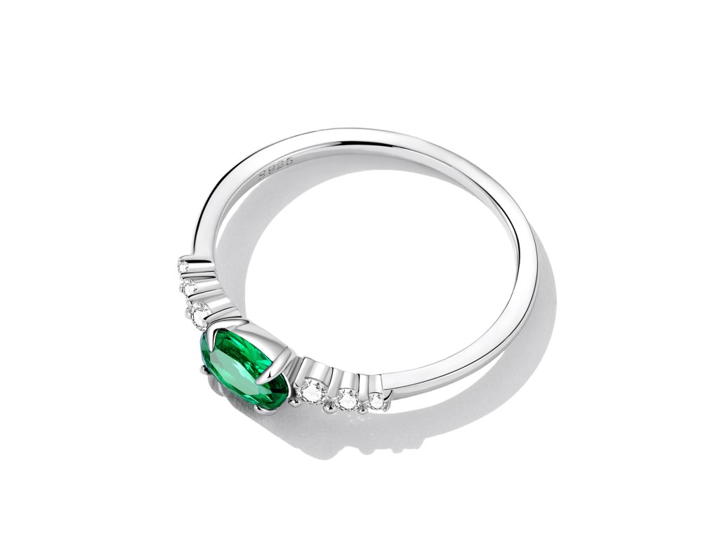 - Stříbrný prsten osazený s zeleným zirkonem. Originální design prstenu, kvalitní zpracování a materiál, ručně dohotovené.