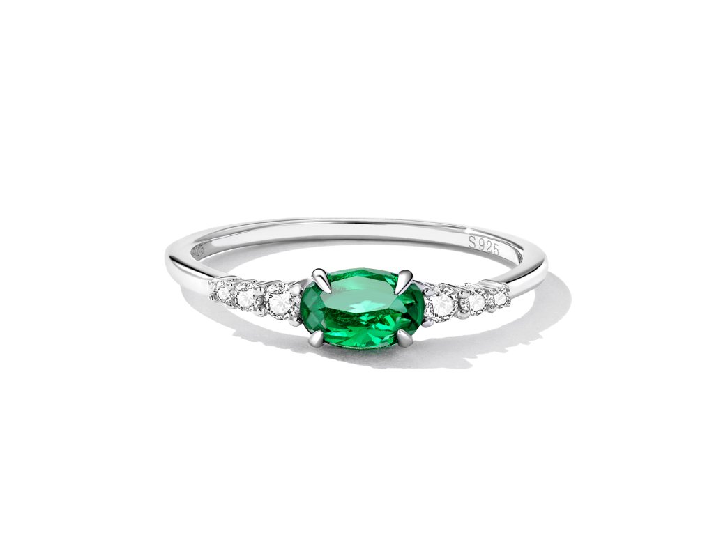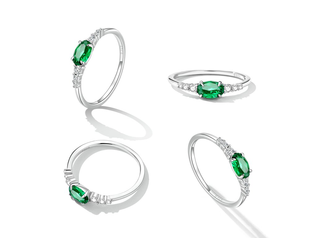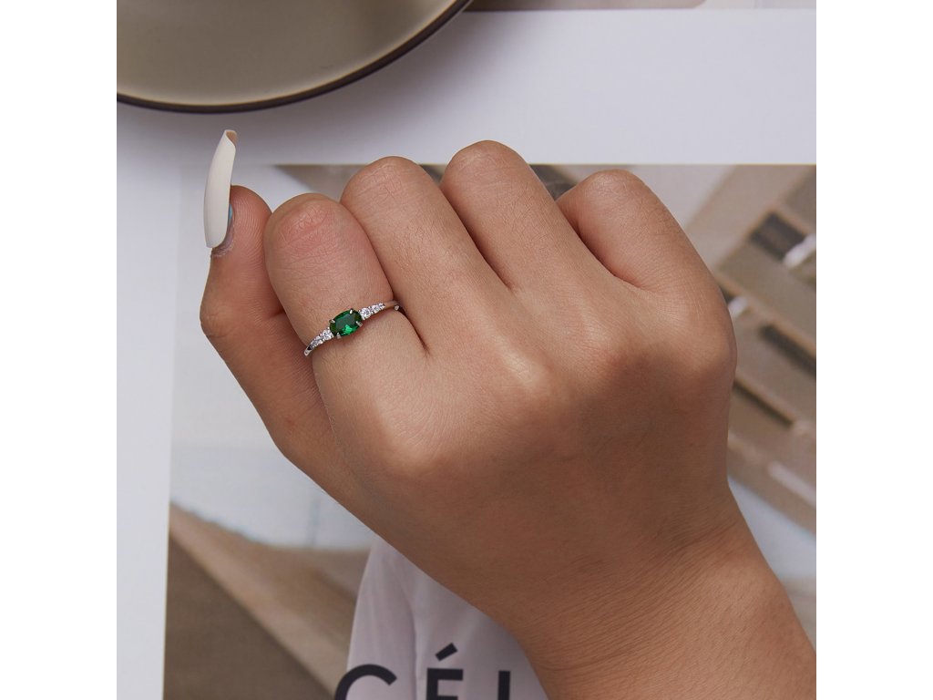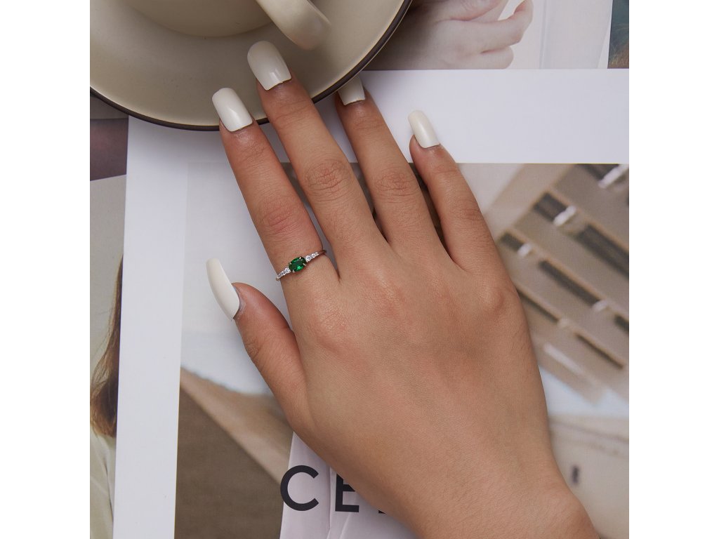 Elenys stříbrný rhodiovaný prsten Smaragdový zirkon