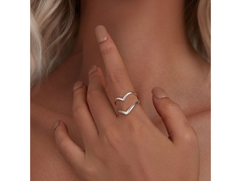 - Stříbrný prsten bez osazení ve tvaru srdce. Originální design prstenu, kvalitní zpracování a materiál, ručně dohotovené.