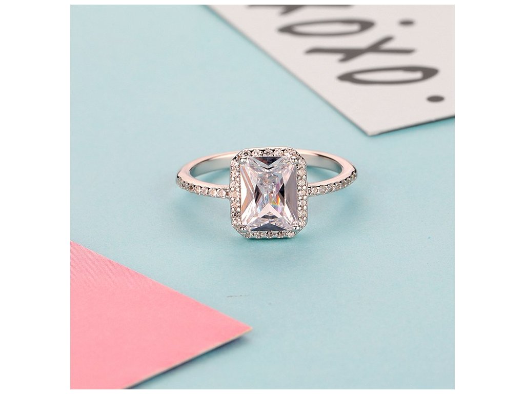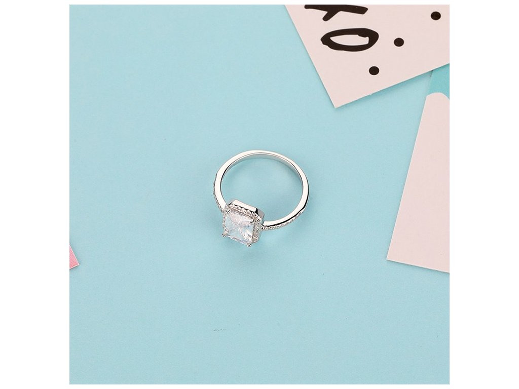 Elenys stříbrný rhodiovaný prsten Broušený čtverec