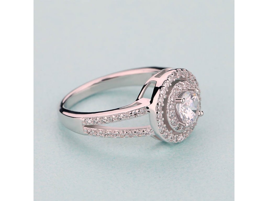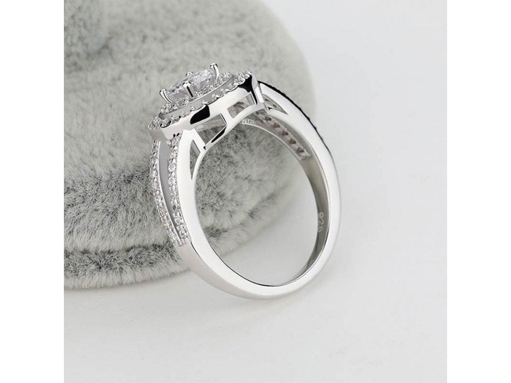 - Stříbrný rhodiovaný královsky elegantní prsten zdobený čirými kameny v podobě třpytivých zirkonů. Střed prstenu tvoří broušený čirý kámen. Kvalitní stříbro zaručí dokonalý lesk šperku a vy zazáříte za každých okolností. Originální design prstenu, kvalitní zpracování a materiál, ručně dohotovené.
