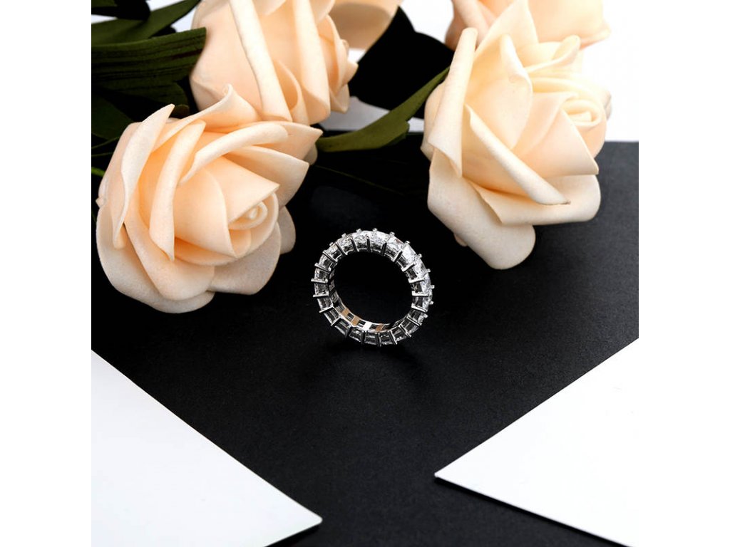 - Stříbrný rhodiovaný prsten v designu Křišťálového klenotu zdobený čirými broušenými kameny v podobě třpytivých zirkonů. Kvalitní stříbro zaručí dokonalý lesk šperku a vy zazáříte za každých okolností. Originální design prstenu, kvalitní zpracování a materiál, ručně dohotovené.
