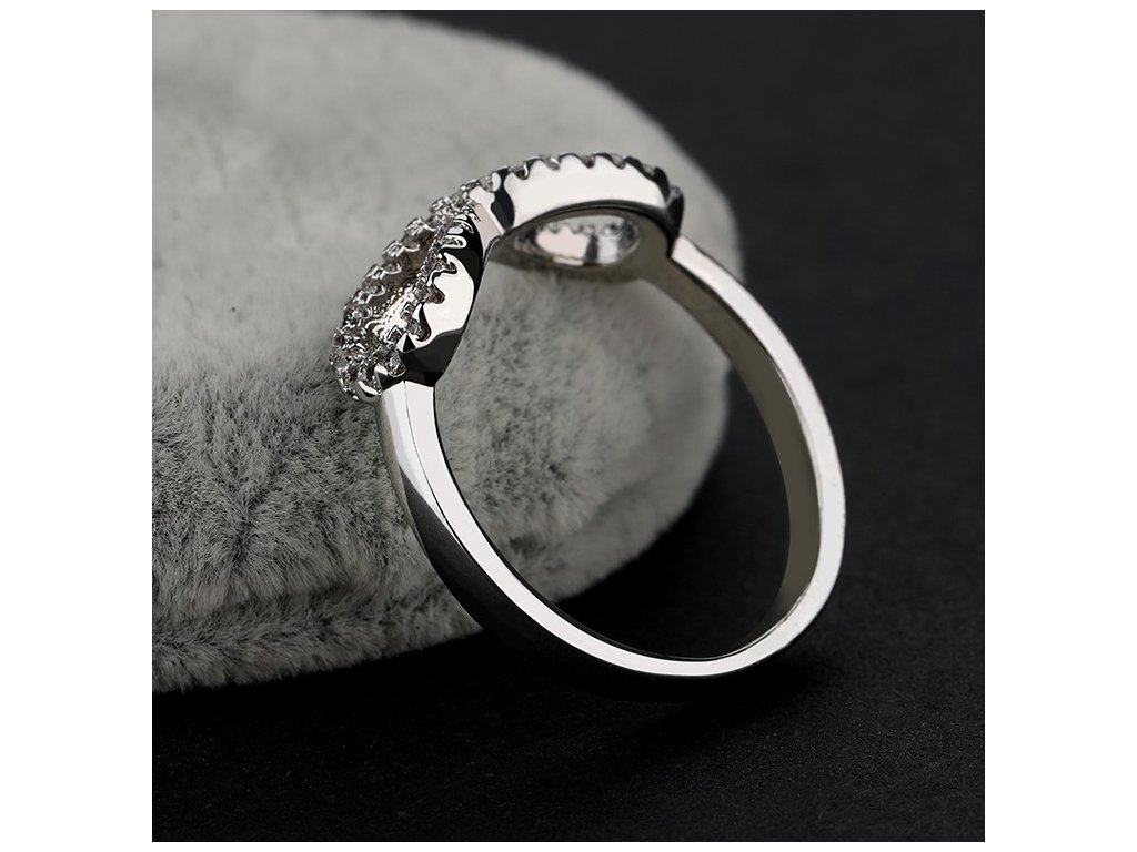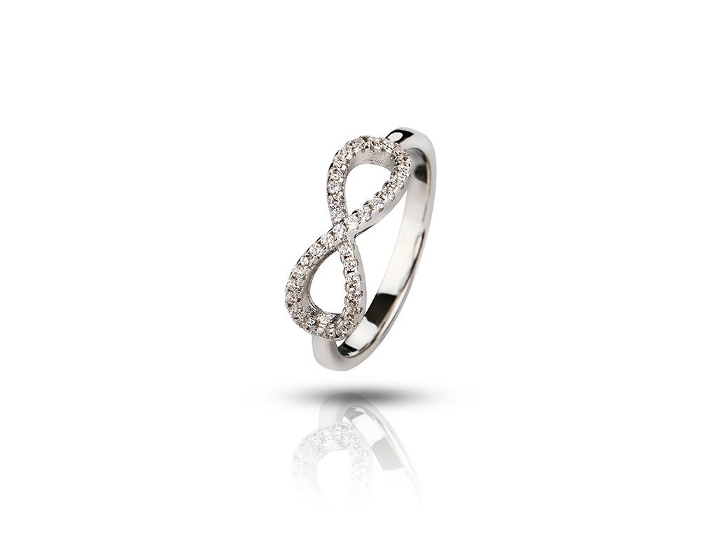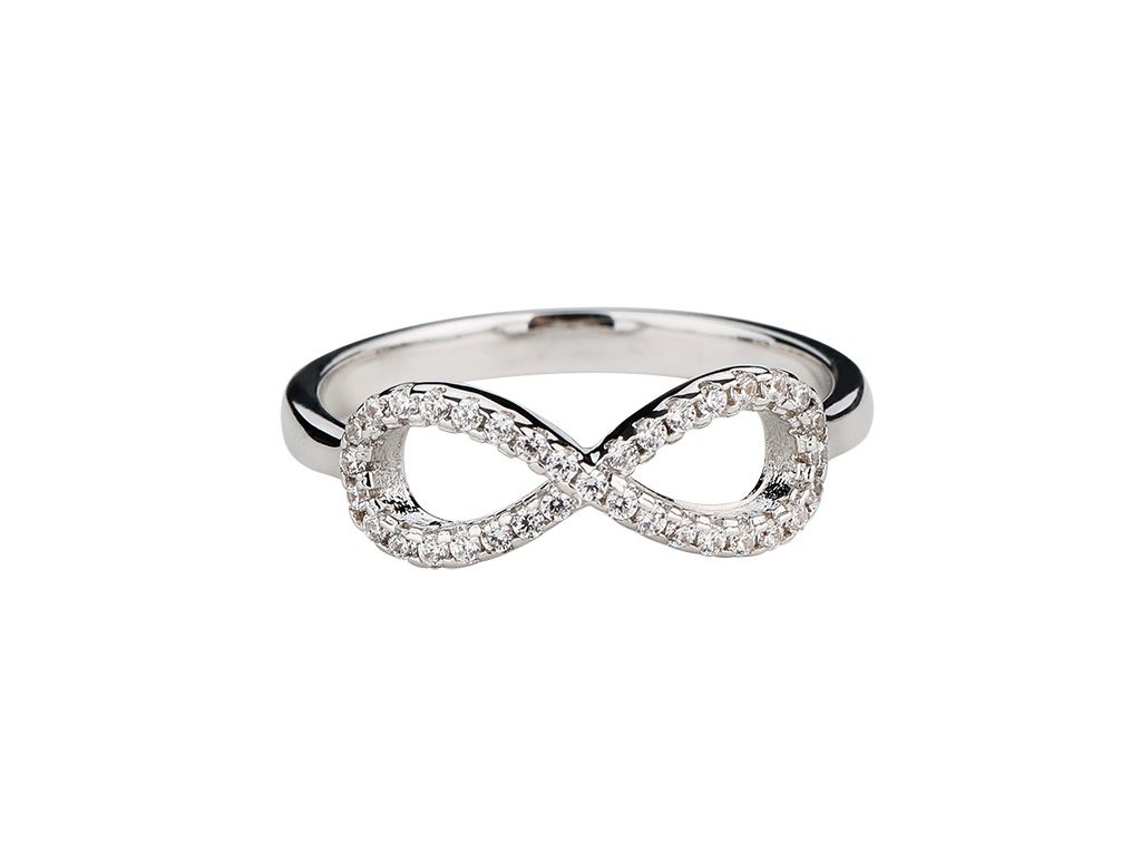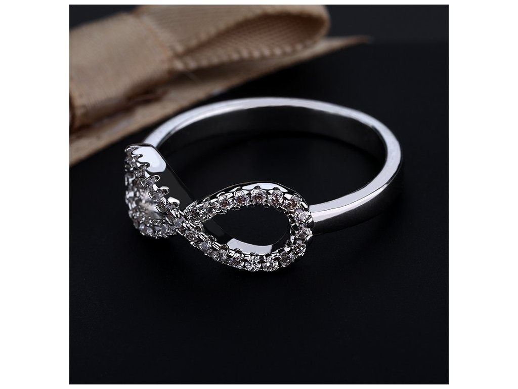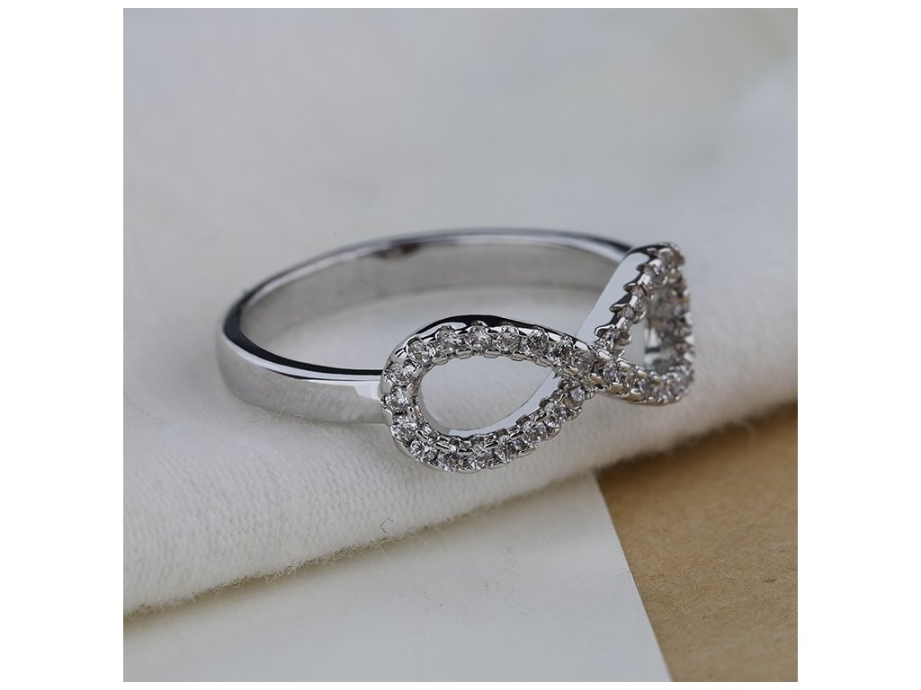 - Stříbrný rhodiovaný prsten se zirkony v designu nekonečna. Originální design prstenu, kvalitní zpracování a materiál, ručně dohotovené.