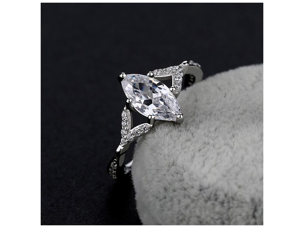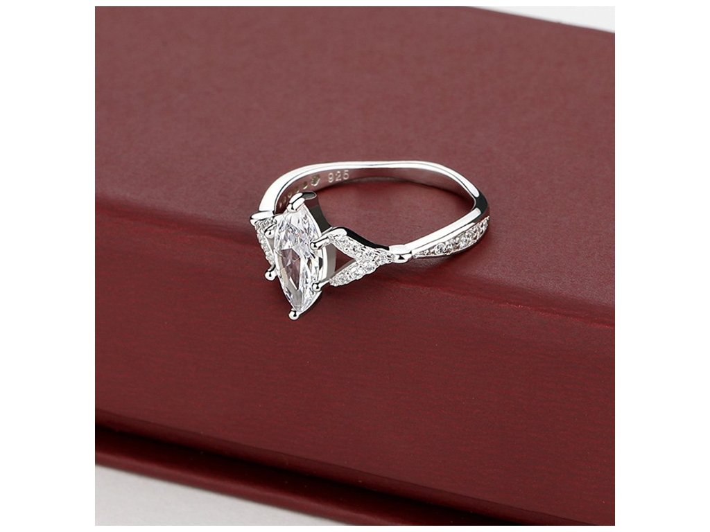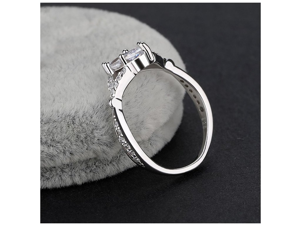 - Elegantní stříbrný rhodiovaný prsten zdobený čirými třpytivými zirkony. Originální design prstenu, kvalitní zpracování a materiál, ručně dohotovené.