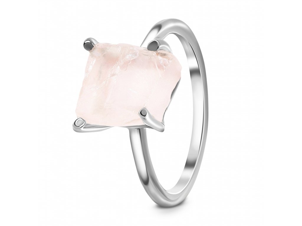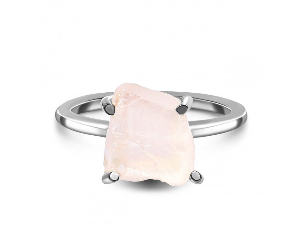 Elenys stříbrný rhodiovaný prsten Raw s drahokamem růženínem Rose