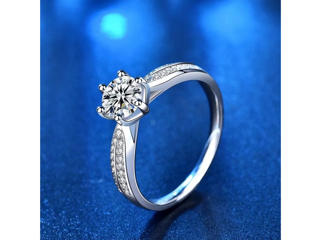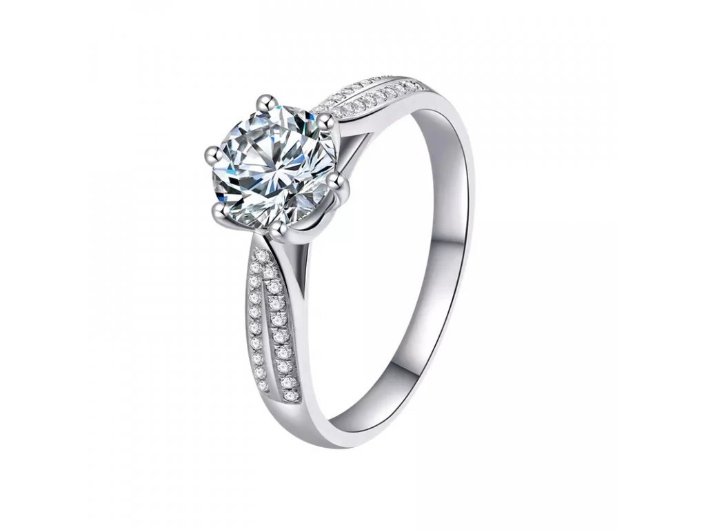 Elenys stříbrný rhodiovaný prsten s drahokamem moissanitem