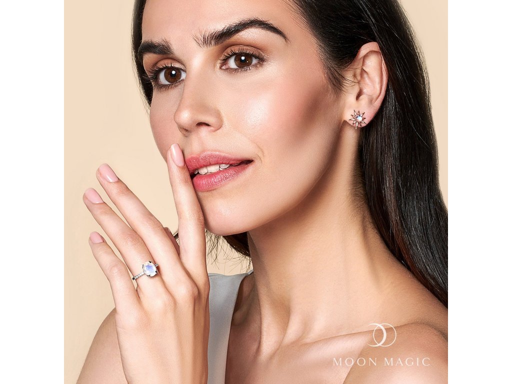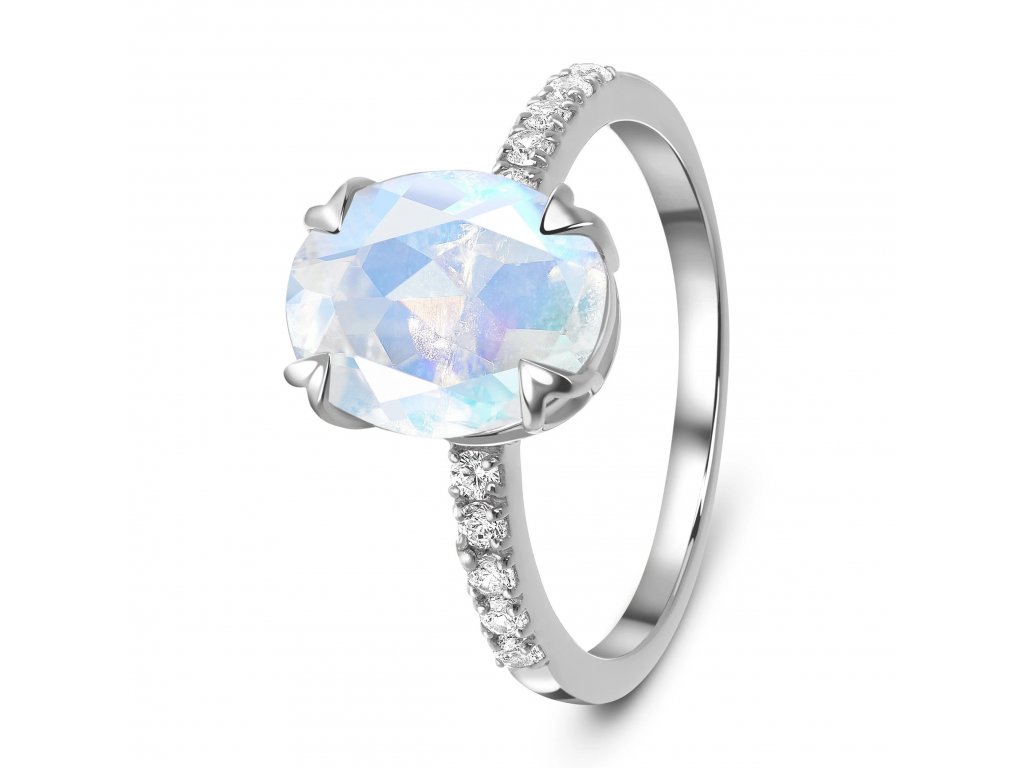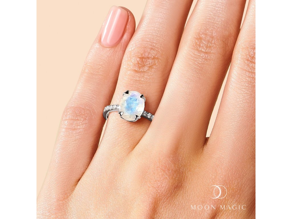 Luxusní romantický stříbrný prsten zdobený velkým měsíčním kamenem