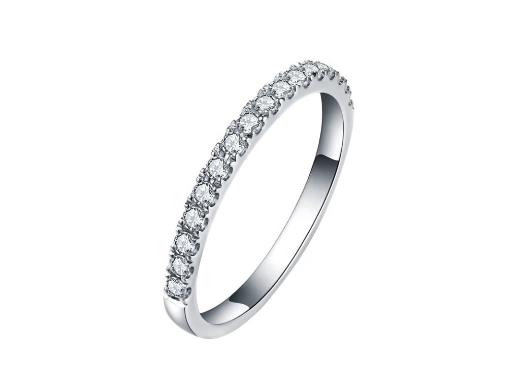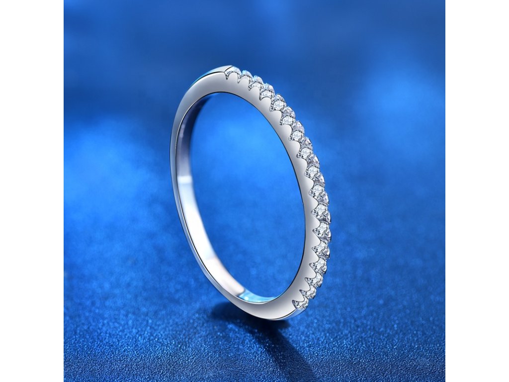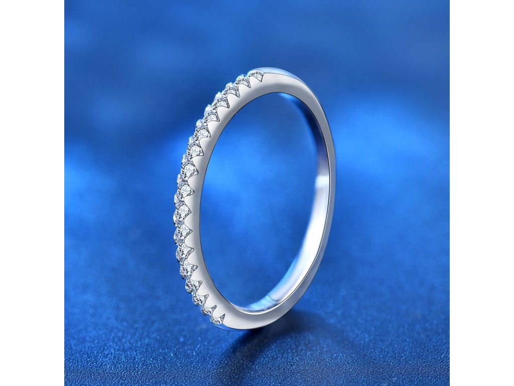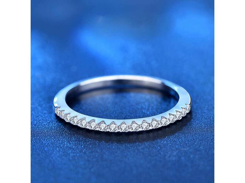 - Stříbrný rhodiovaný jemný prsten zdobený zářivými drahokamy moissanity. Originální design prstenu, kvalitní zpracování a materiál, ručně dohotovené.