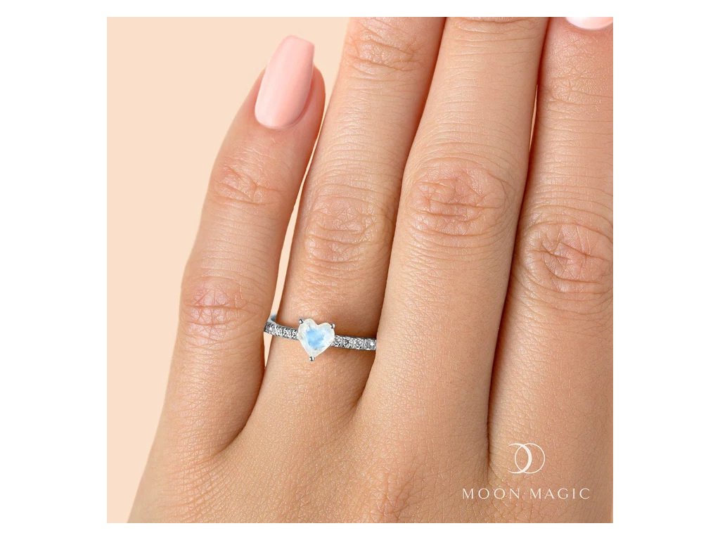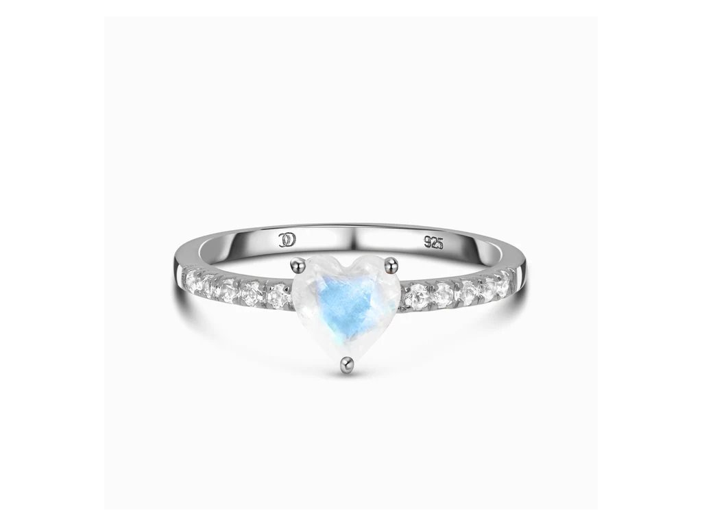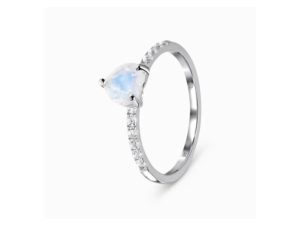 - Luxusní stříbrný rhodiovaný prsten Srdce obohacený měsíčním duhovým drahokamem Moonstonem a čirými třpytivými drahokamy topazy. Originální design náhrdelníku, kvalitní zpracování a materiál, ručně dohotovené.