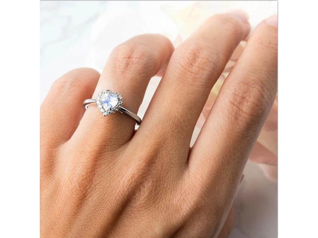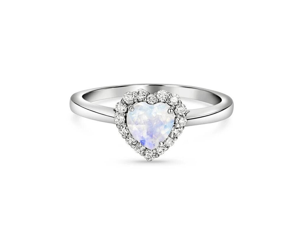 Elenys stříbrný rhodiovaný prsten s měsíčním drahokamem Srdce