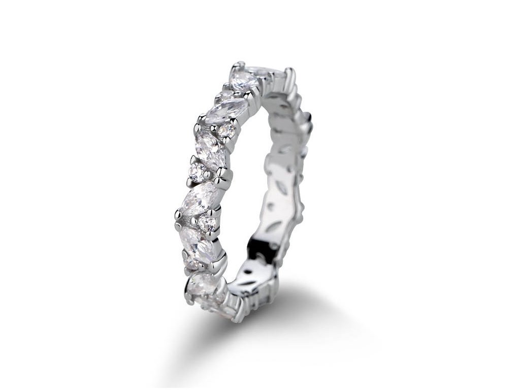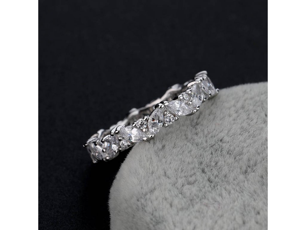 - Stříbrný rhodiovaný prsten v designu Třpytivých lístků zdobených čirými třpytivými zirkony. Kvalitní stříbro zaručí dokonalý lesk šperku a vy zazáříte za každých okolností. Originální design prstenu, kvalitní zpracování a materiál, ručně dohotovené.