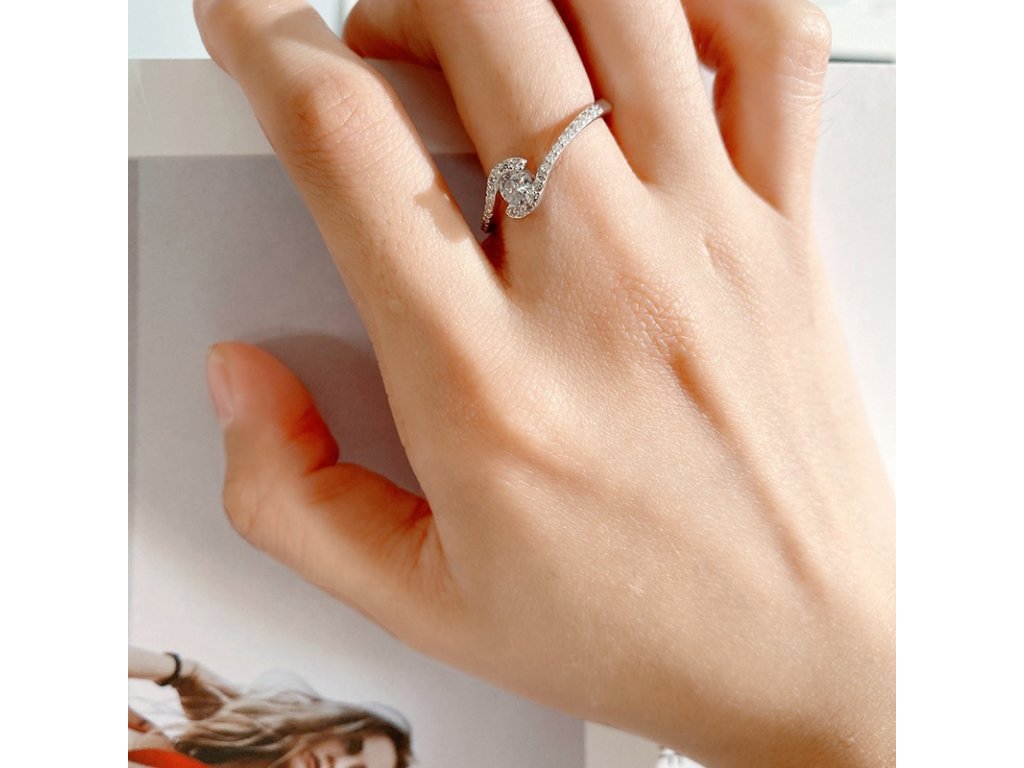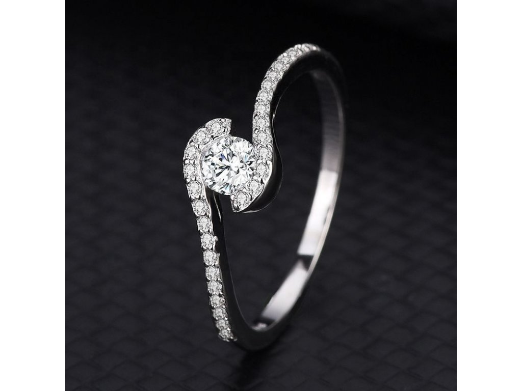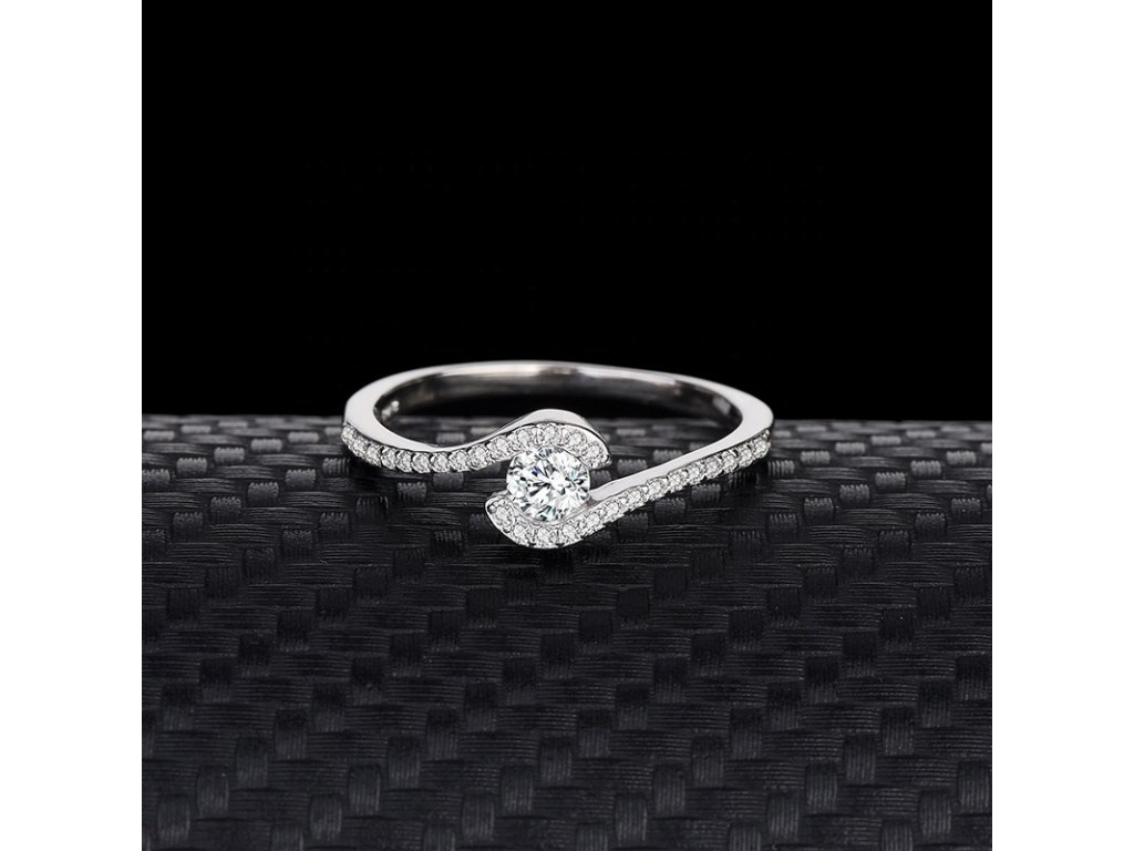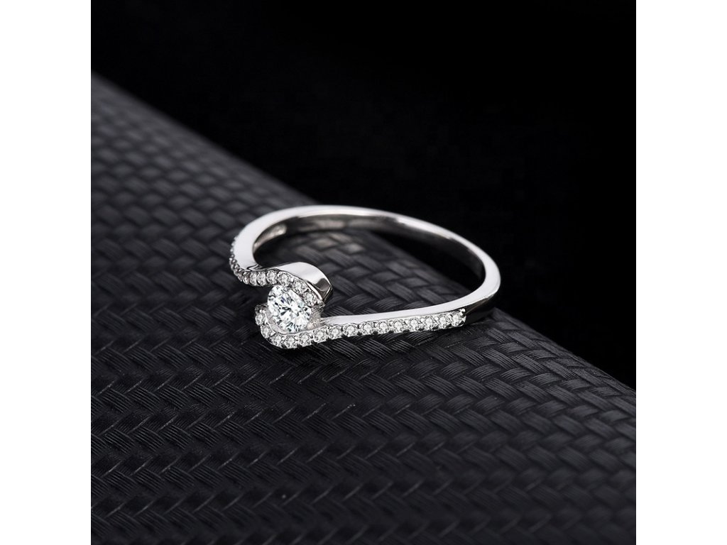 - Stříbrný rhodiovaný prsten Třpytivé propojení zdobený ručně posázenými čirými zirkony. Originální design prstenu, kvalitní zpracování a materiál, ručně dohotovené.