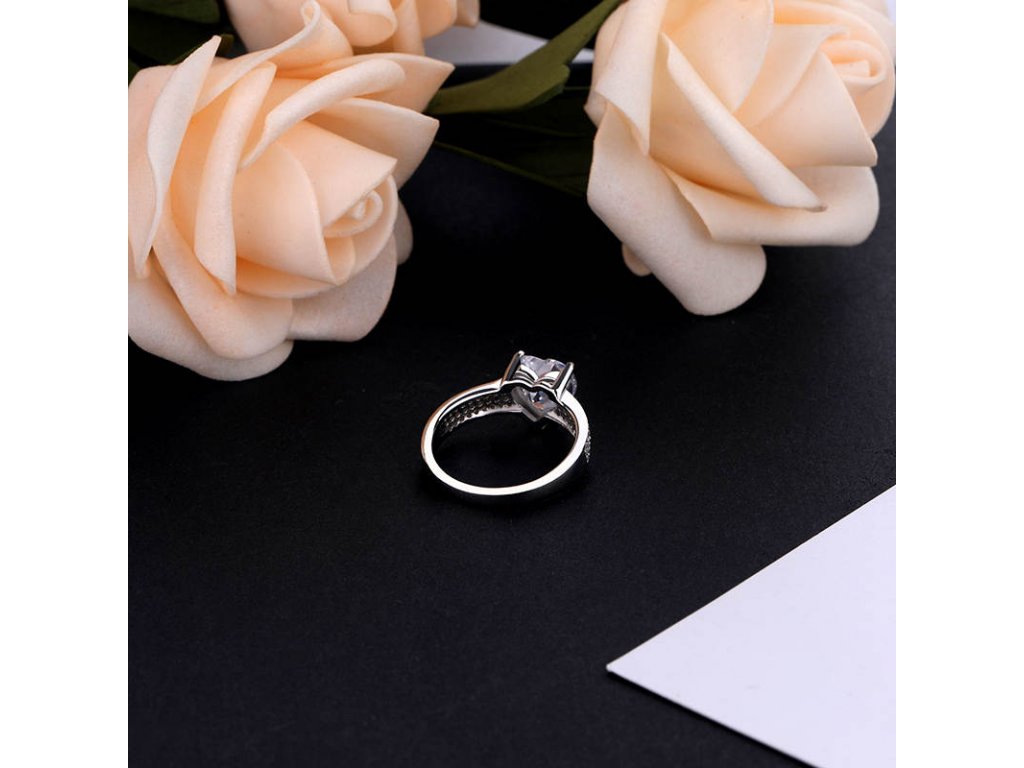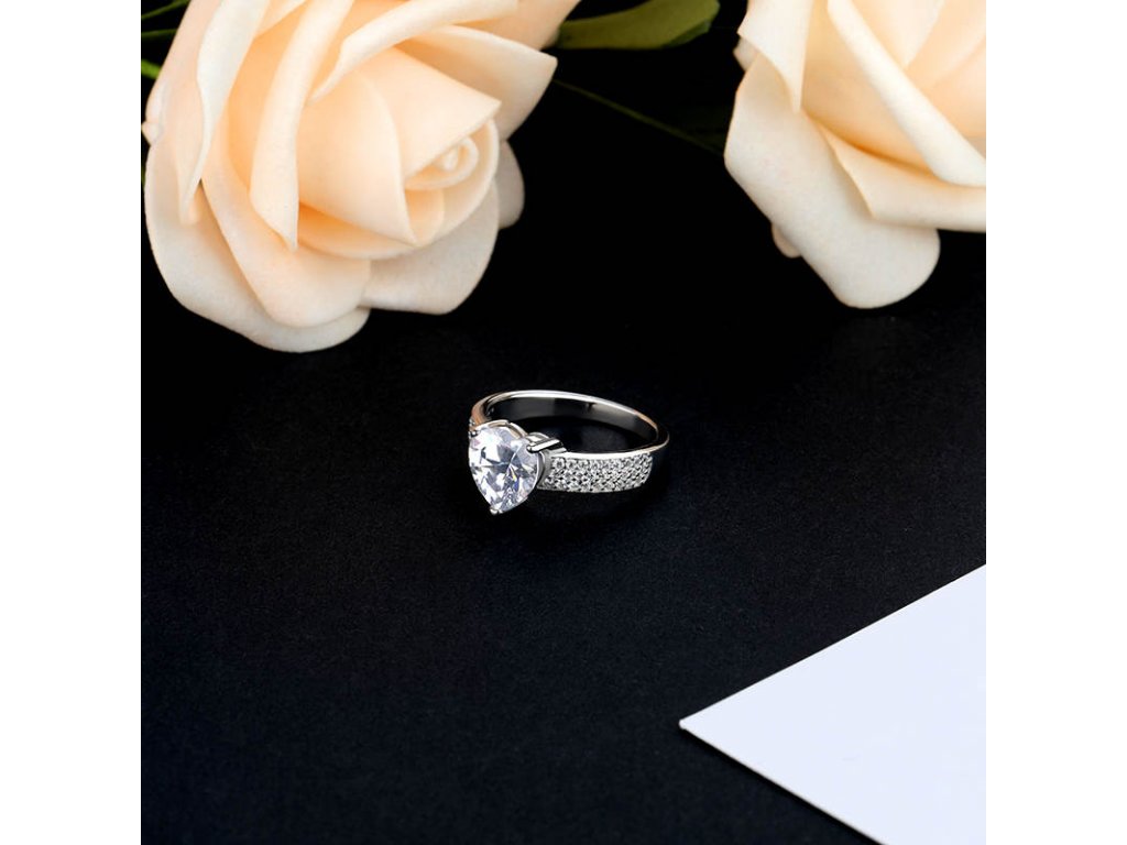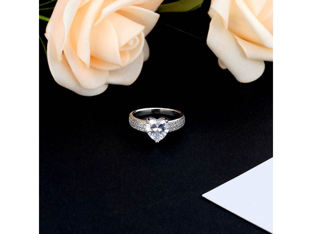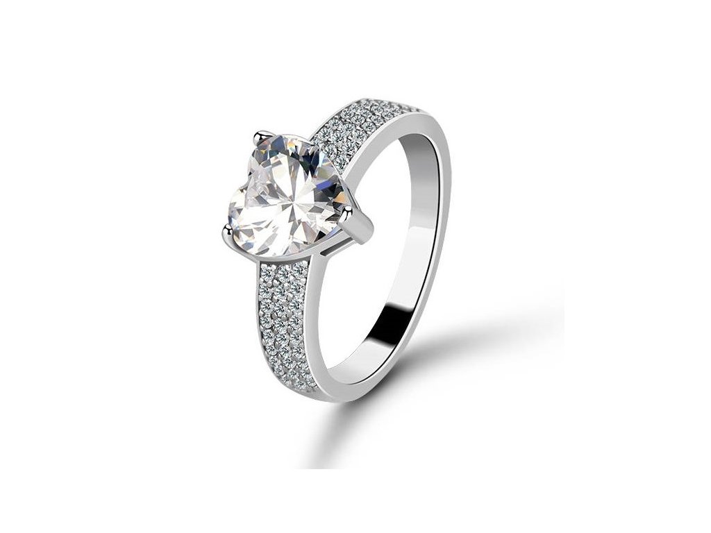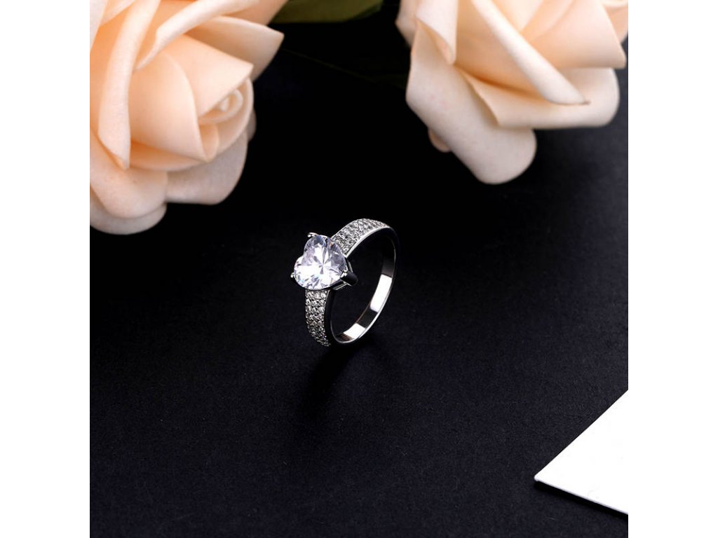- Stříbrný rhodiovaný prsten zdobený čirými třpytivými zirkony a velkým broušeným zirkonem ve tvaru srdce. Kvalitní stříbro zaručí dokonalý lesk šperku a vy zazáříte za každých okolností. Originální design prstenu, kvalitní zpracování a materiál, ručně dohotovené.