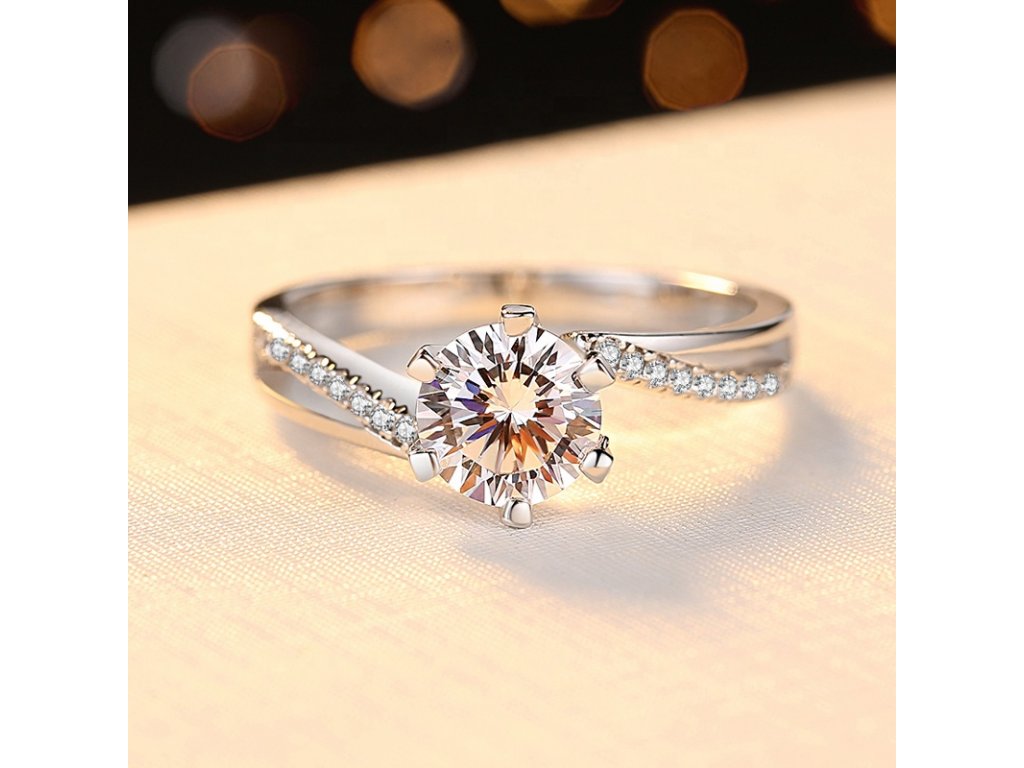 Elenys stříbrný rhodiovaný prsten s drahokamy moissanity