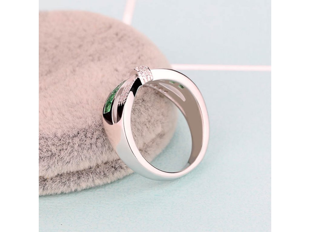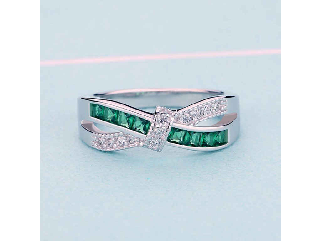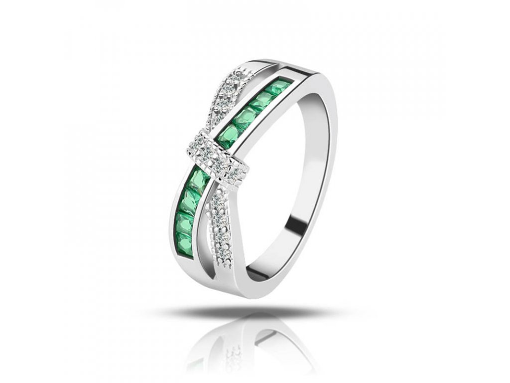 - Stříbrný rhodiovaný prsten v designu mašle zdobené zelenými a čirými třpytivými zirkony. Kvalitní stříbro zaručí dokonalý lesk šperku a vy zazáříte za každých okolností. Originální design prstenu, kvalitní zpracování a materiál, ručně dohotovené.