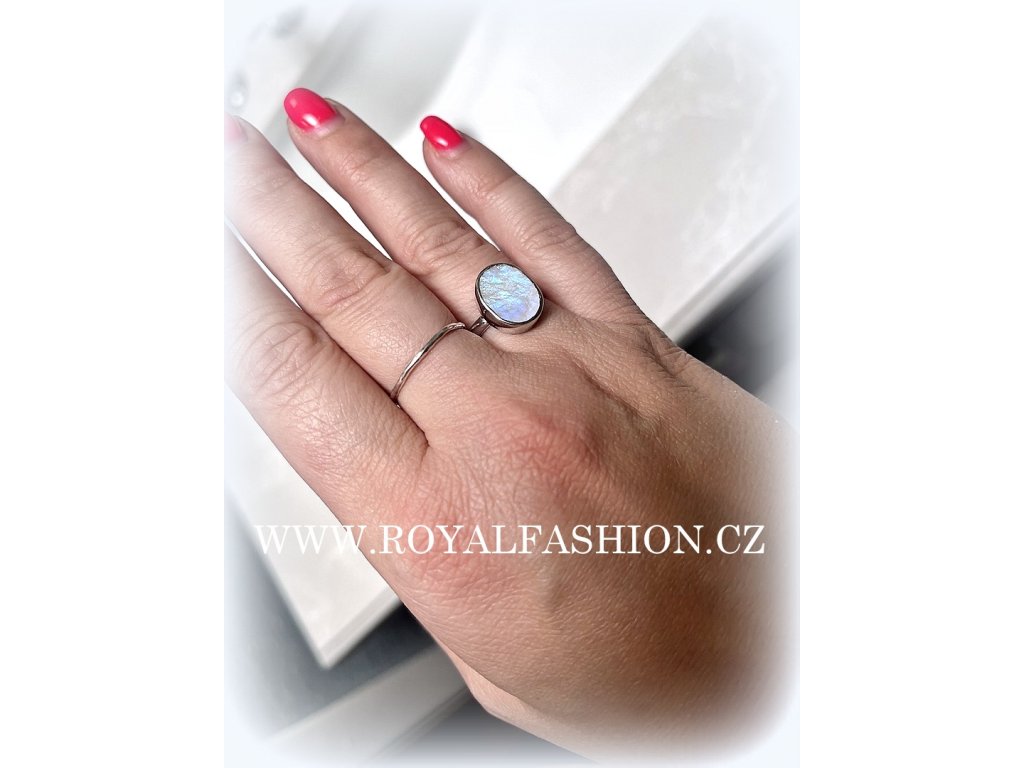 - Luxusní stříbrný rhodiovaný prsten Raw obohacený měsíčním duhovým drahokamem Moonstonem. Originální design prstenu, kvalitní zpracování a materiál, ručně dohotovené.