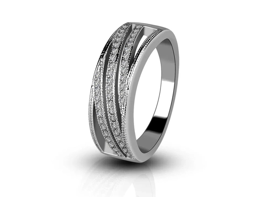 Stříbrný rhodiovaný prsten v designu Třpytivých linií zdobených čirými třpytivými zirkony. Kvalitní stříbro zaručí dokonalý lesk šperku a vy zazáříte za každých okolností. Originální design prstenu, kvalitní zpracování a materiál, ručně dohotovené. Stříbro ryzost Ag 925/1000, zirkony. Povrchová úprava - rhodiováno. Vaši objednávku dodáme v DÁRKOVÉM BALENÍ - ZDARMA.