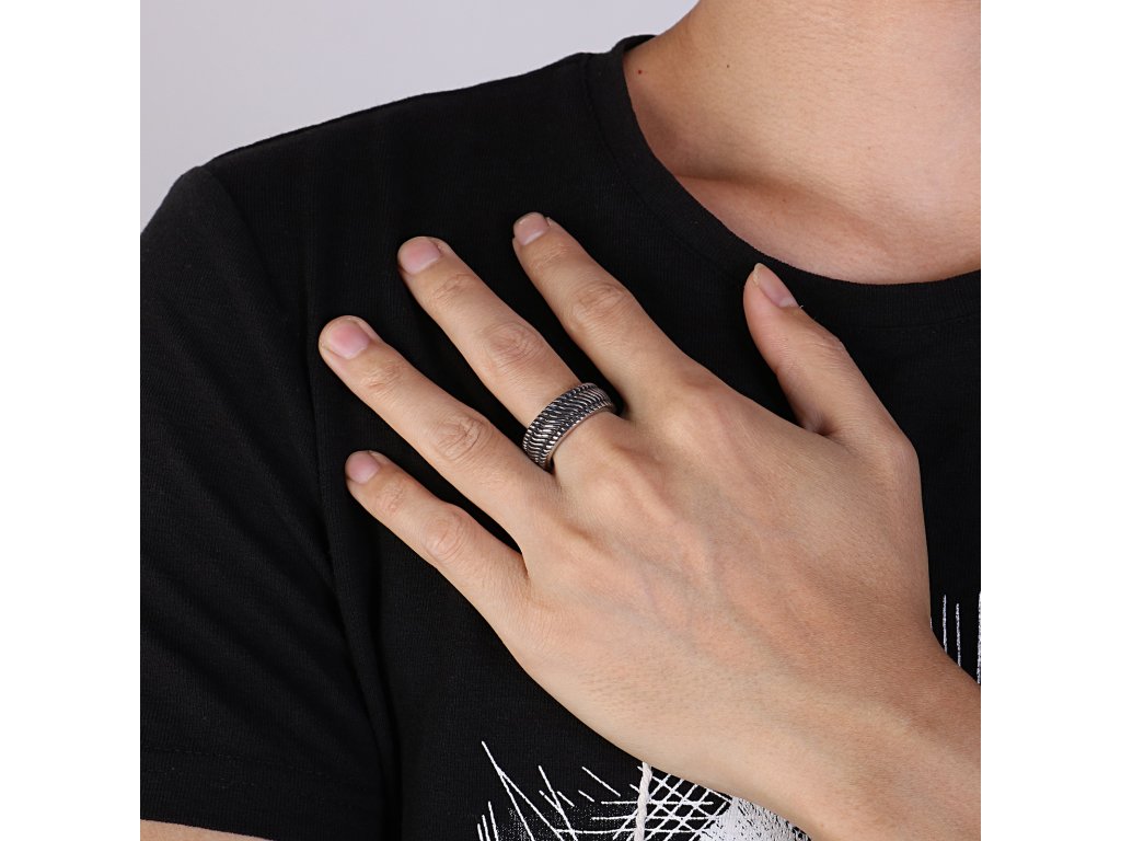 Pánský prsten z hypoalergenní, kvalitní a pevné chirurgické oceli. Originální design prstenu, kvalitní zpracování a materiál. Chirurgická ocel. Šířka prstenu: 8 mm. Vaši objednávku dodáme v DÁRKOVÉM BALENÍ - ZDARMA.