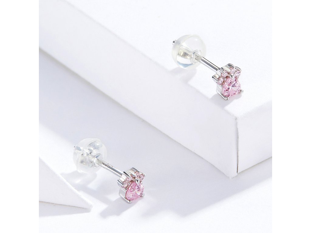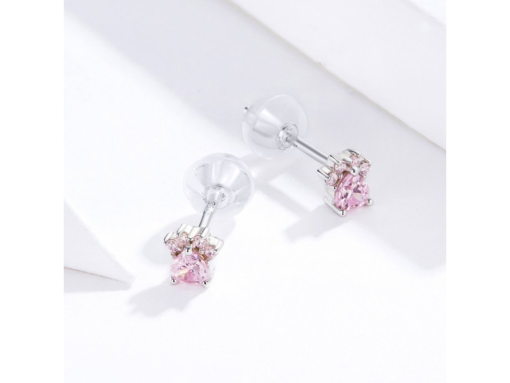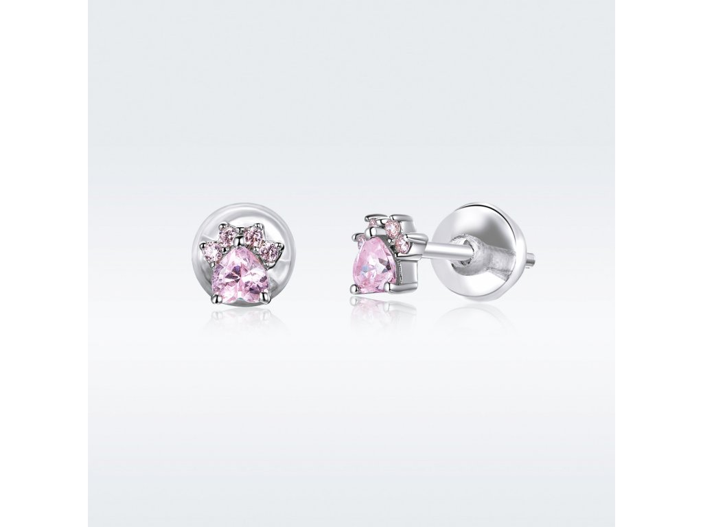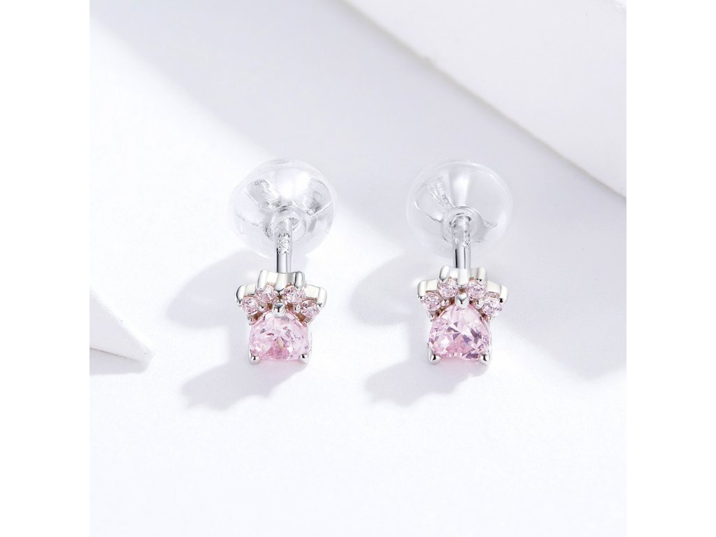 - Stříbrné peckové náušnice v designu Packy / tlapky roztomilého mazlíčka zdobené světle růžovými zirkony. Originální design náušnic, kvalitní zpracování a materiál, ručně dohotovené.