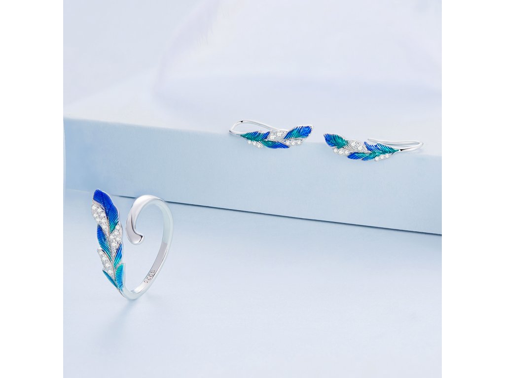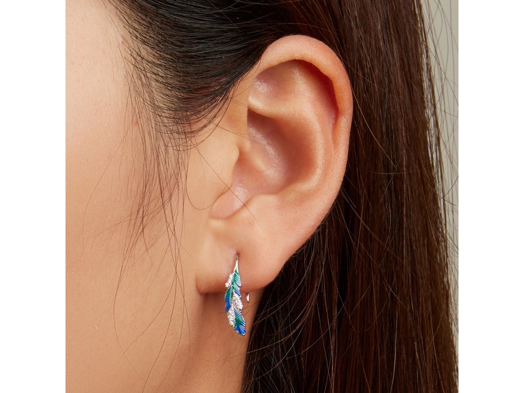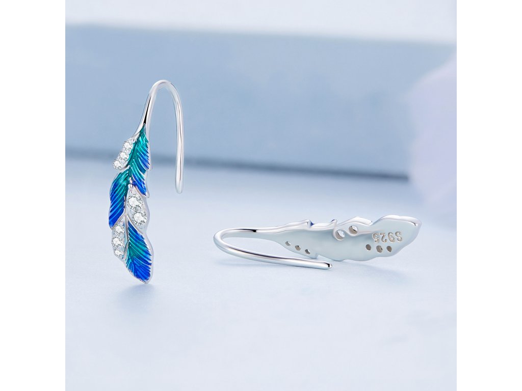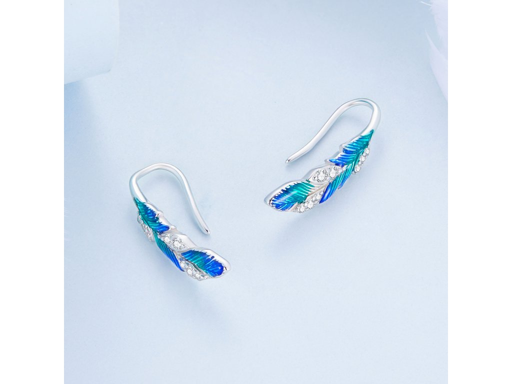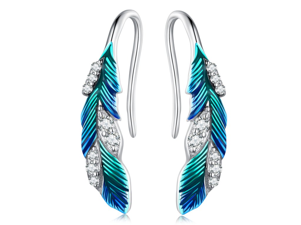 - Stříbrné náušnice v designu pavích peří zdobené zirkony . Originální design náušnic, kvalitní zpracování a materiál, ručně dohotovené.