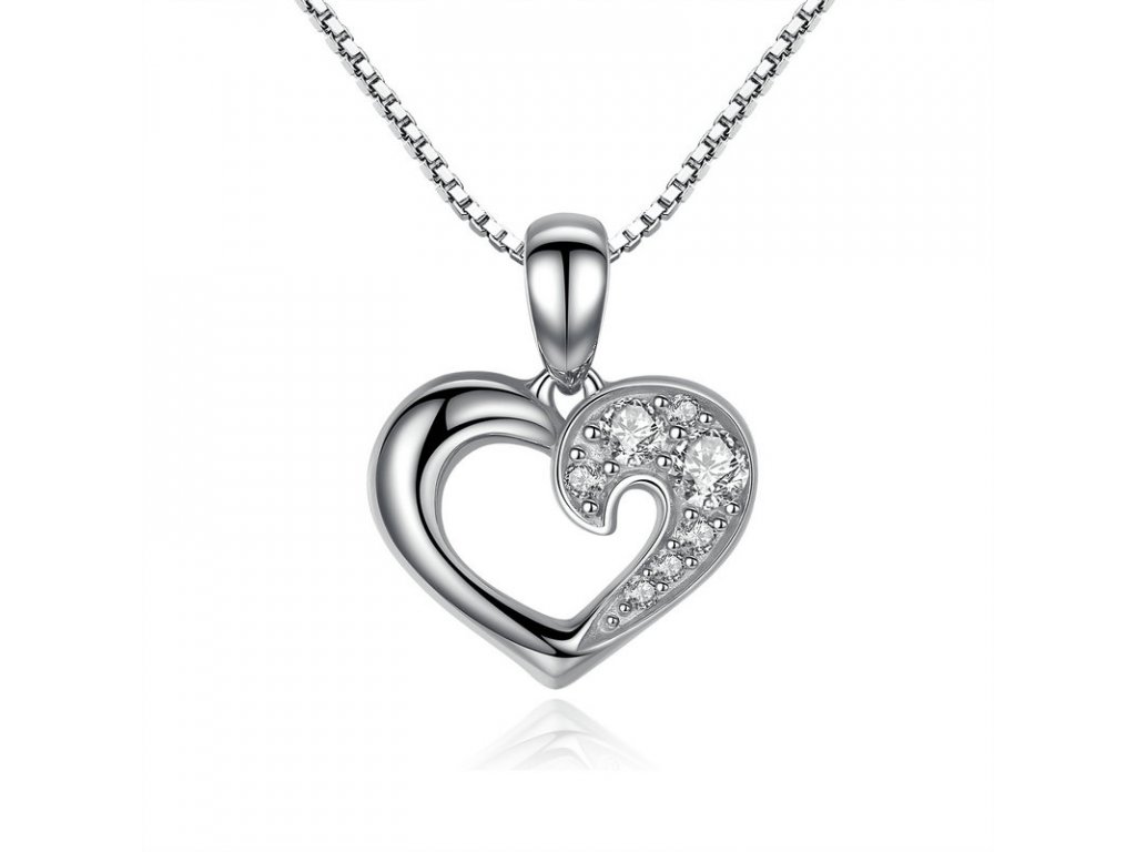 Romantický stříbrný náhrdelník s přívěskem něžného srdce zdobeného třpytivými zirkony. Originální design náhrdelníku, kvalitní zpracování a materiál, ručně dohotovené.