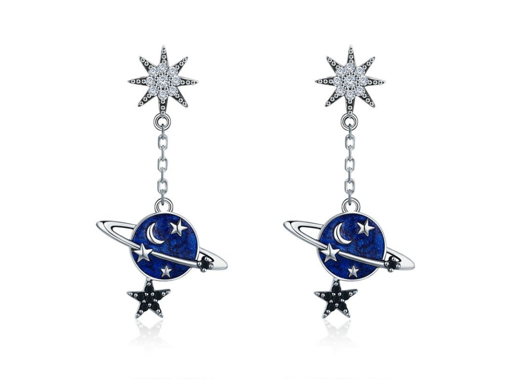Luxusní a propracované visací náušnice v designu krásného vesmíru zdobené zirkony a ručně nanášenou glazurou.