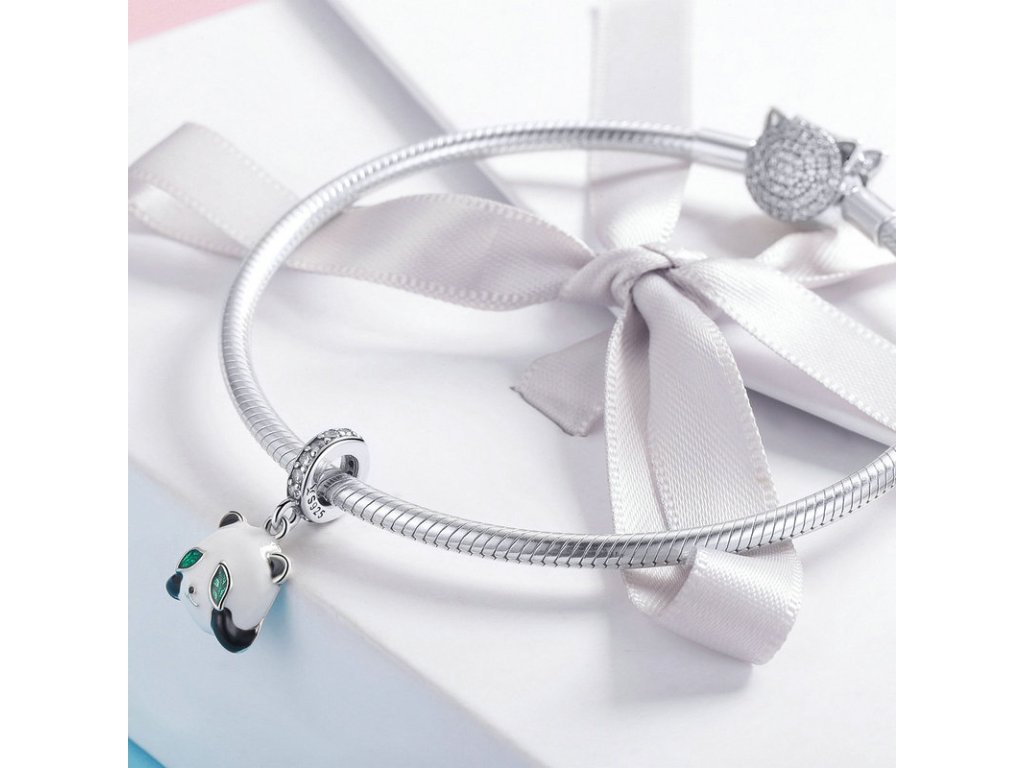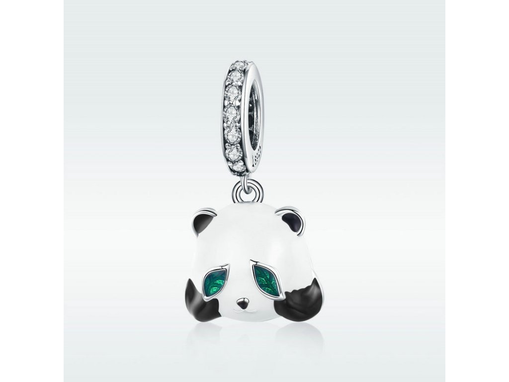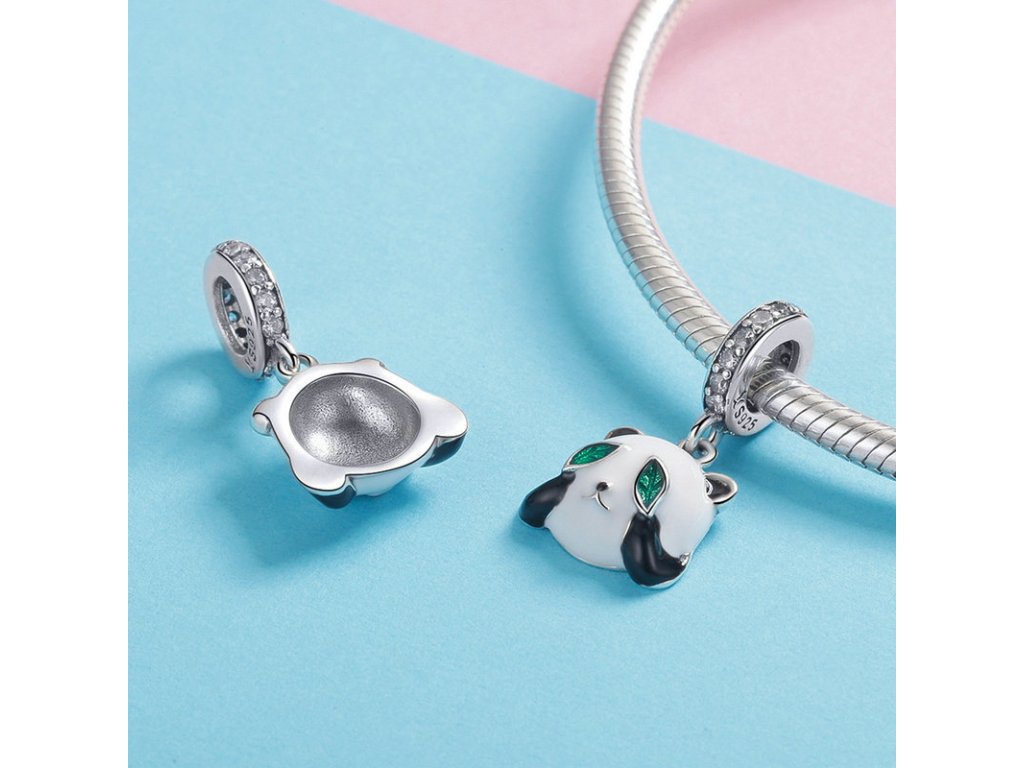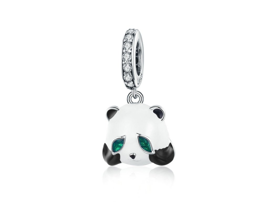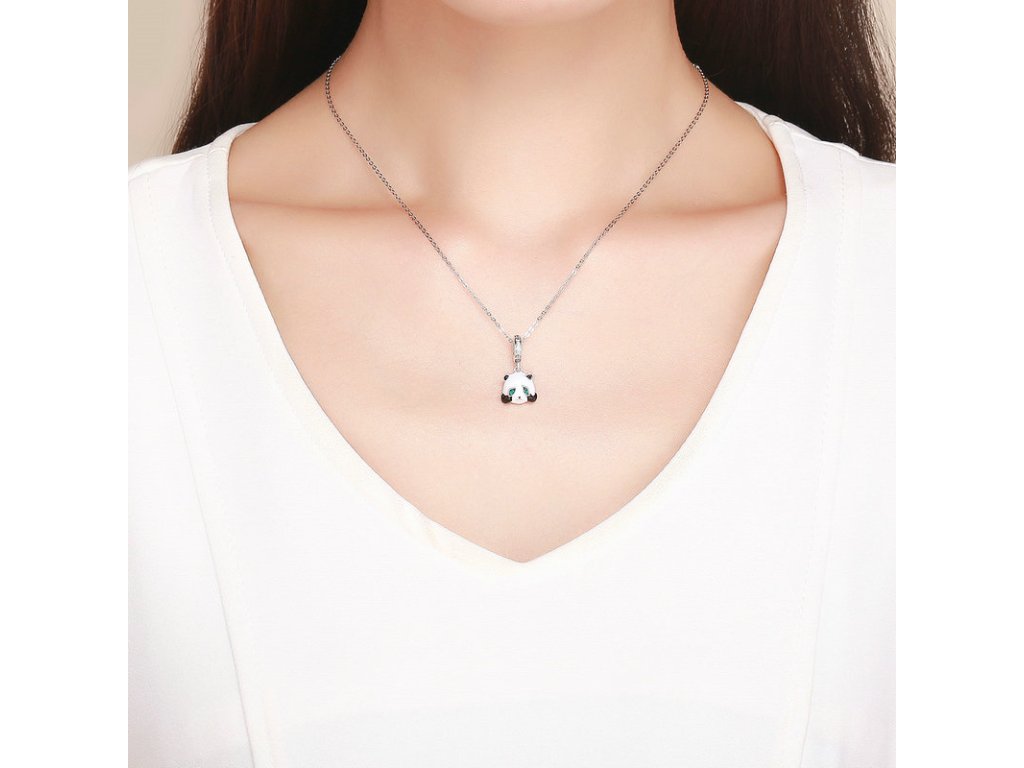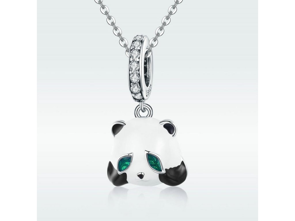 Roztomilý stříbrný přívěsek ve tvaru pandy dekorovaný ručně nanášenou barevnou glazurou a očko přívěsku je zdobeno třpytivými zirkony. Originální design přívěsku, kvalitní zpracování a materiál, ručně dohotovené.