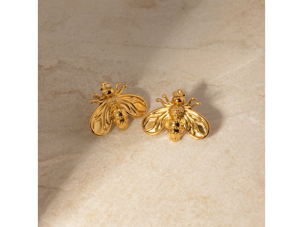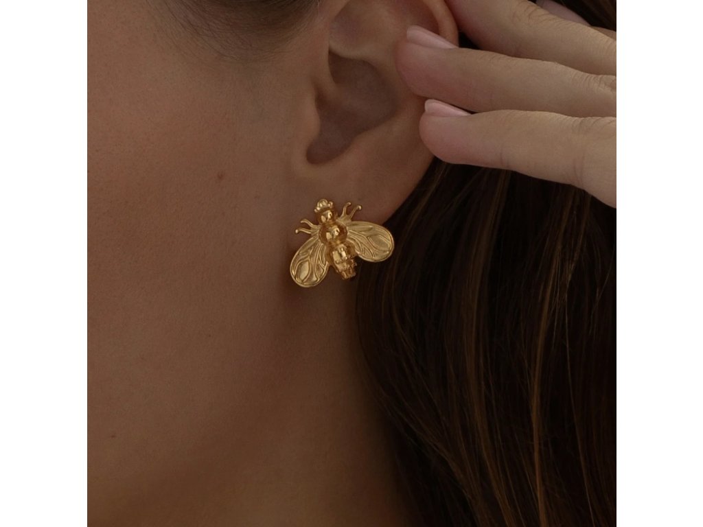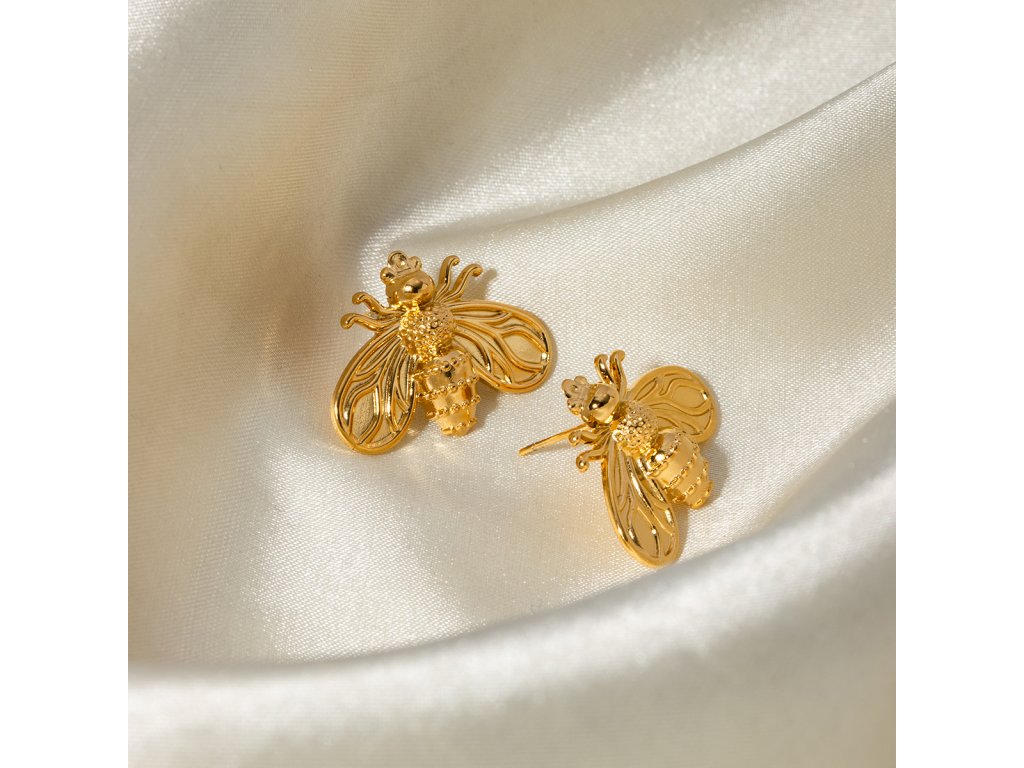 Náušnice ve tvaru včelky jsou symbolem plodnosti, štěstí a harmonie. Lesklý povrch dodává outfitu výrazný charakter, který působí elegantně a sebevědomě.