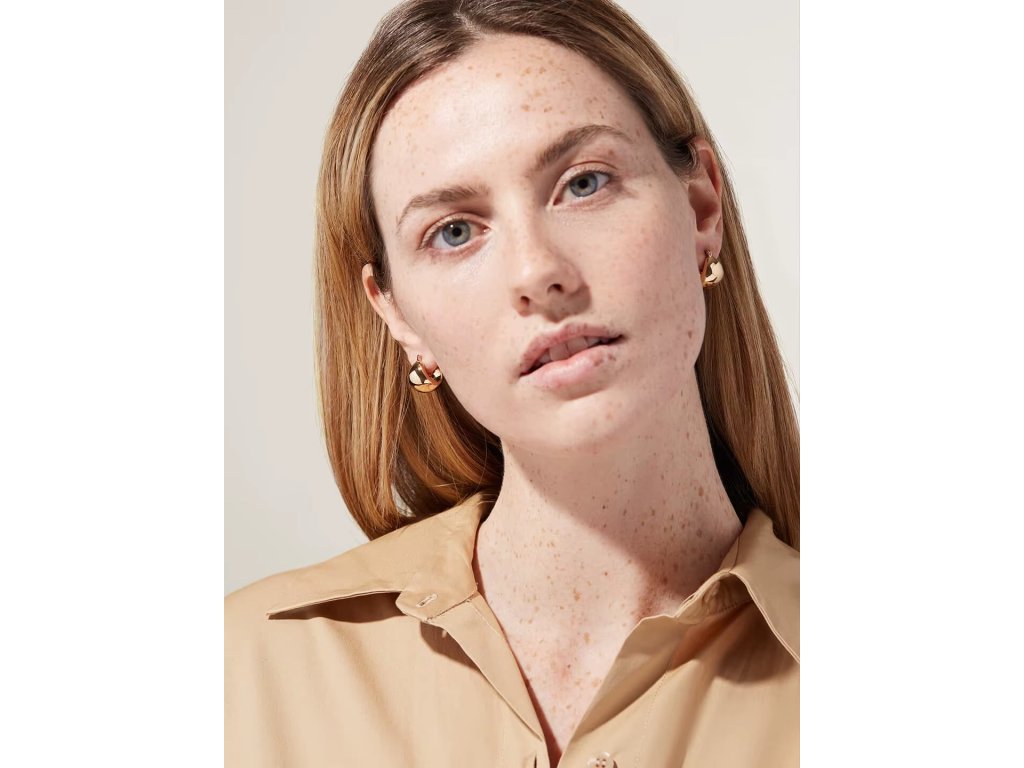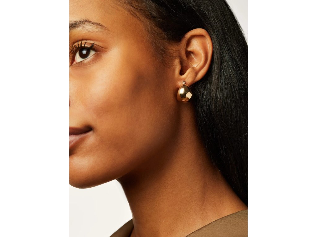 Náušnice ELENYS Bold zaujmou plným, zaobleným tvarem, který dodává tváři jemný rámec a elegantní výraz. Minimalistický, ale odvážný design se snadno kombinuje s jinými šperky a hodí se pro každodenní nošení i výjimečné příležitosti.