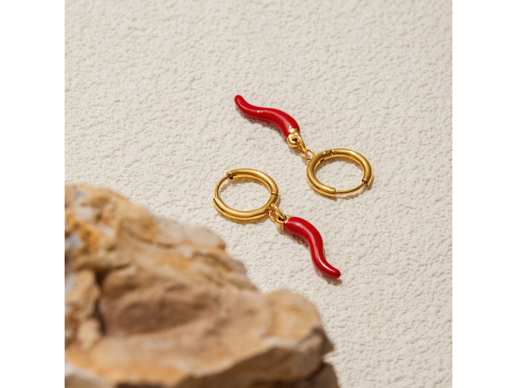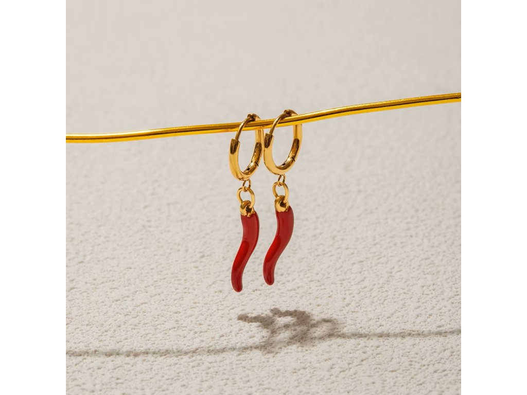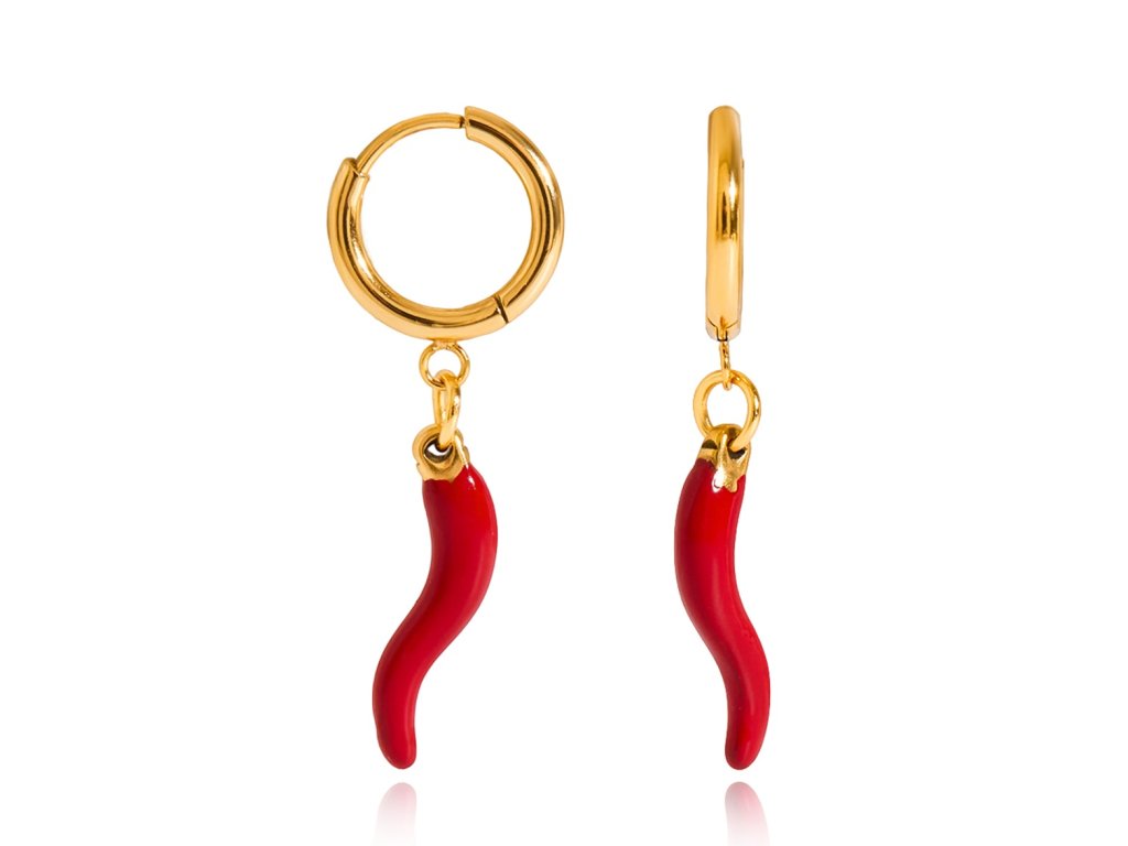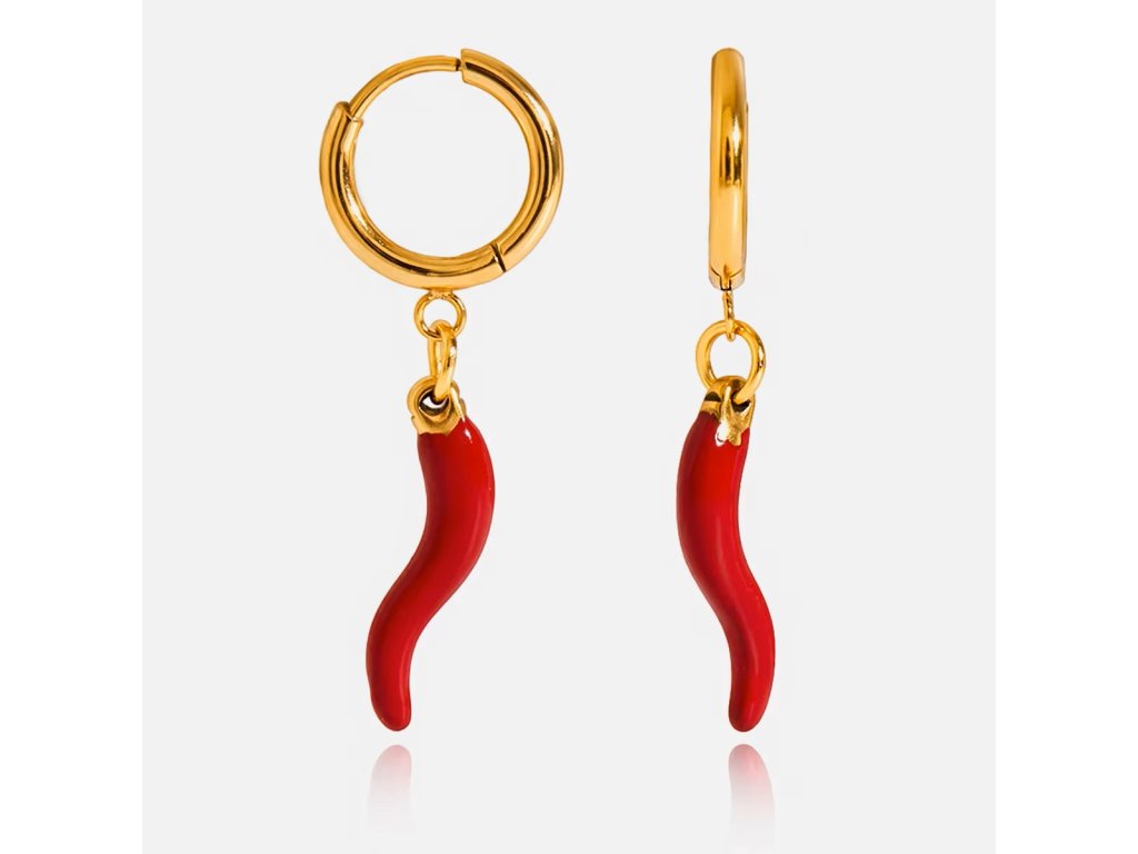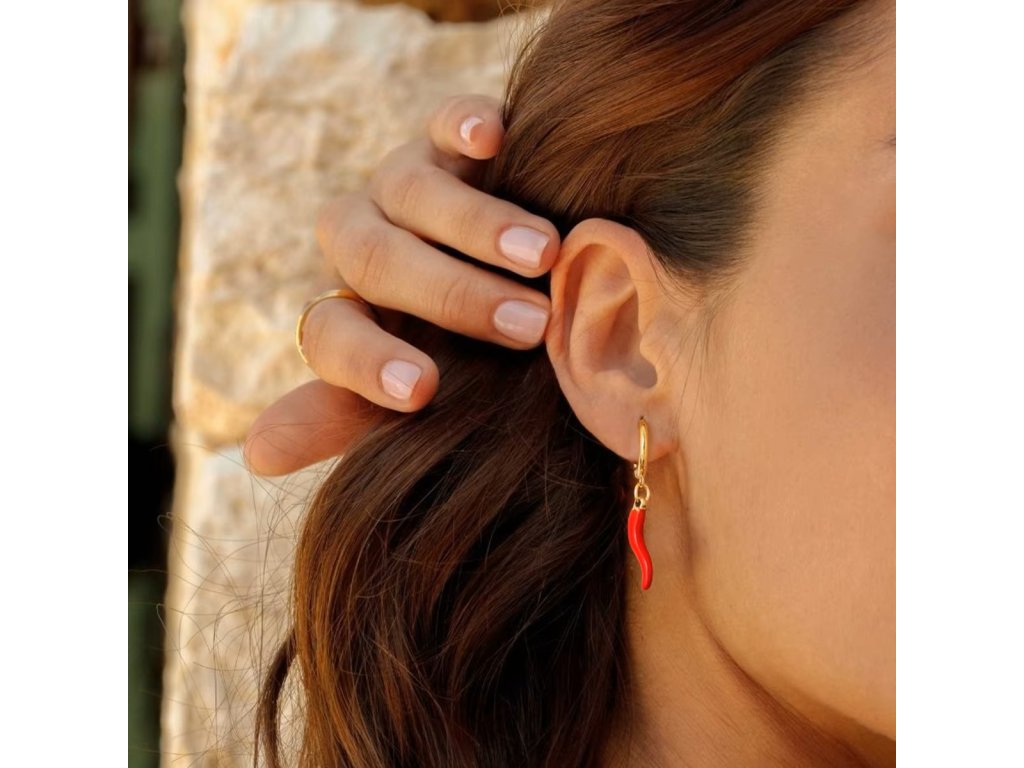 Červená paprička je symbolem síly, vášně a ochrany. V kombinaci se zlatým kruhem vytváří originální šperk, který oživí tvůj outfit a přinese ti šťastnou energii.