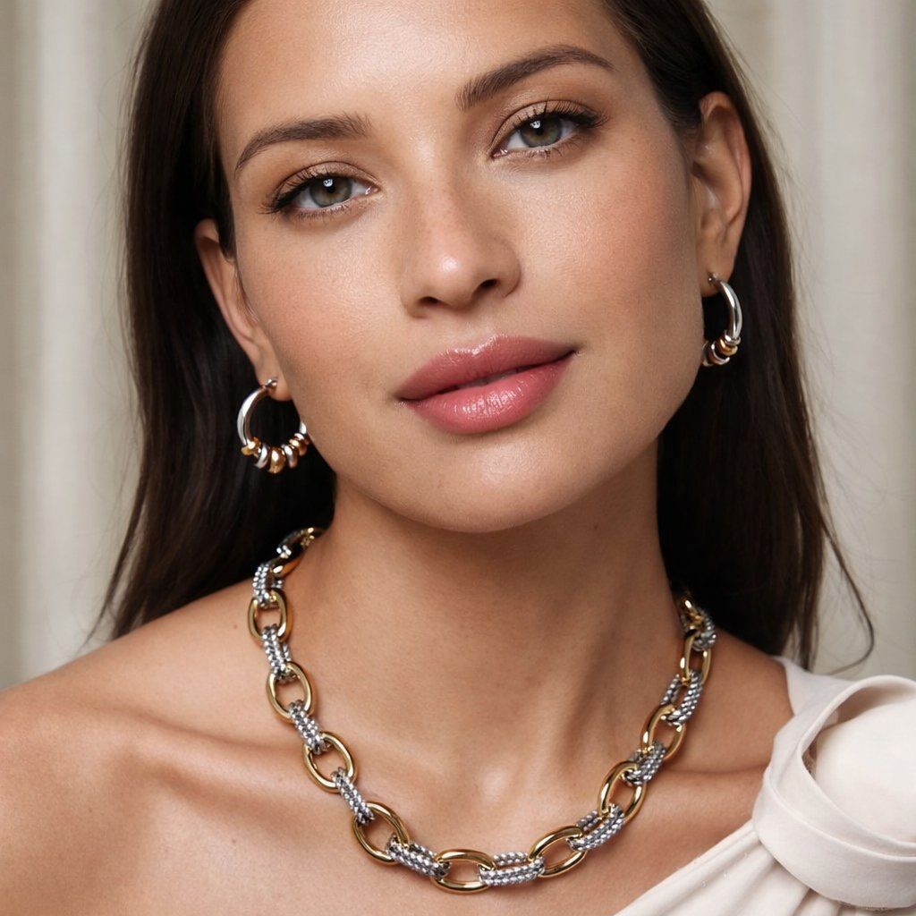 ELENYS Essence Hoops Dual kombinují teplý odstín zlata s chladnou chirurgickou ocelí. Výsledkem je moderní kontrast, který působí přirozeně, elegantně a sebevědomě.