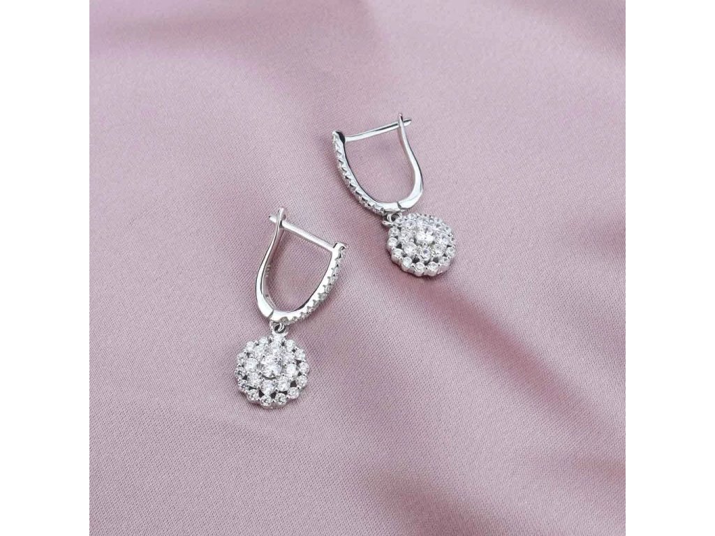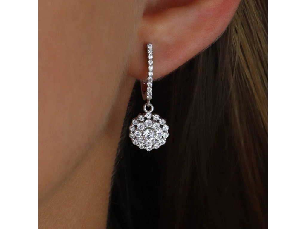 Náušnice Květ elegance jsou ztělesněním vytříbeného stylu a ženské jemnosti. Precizně zasazené čiré kameny vytvářejí bohatý květinový motiv, který při každém pohybu zachycuje světlo a dodává šperku luxusní lesk. Zavěšené provedení působí lehce a elegantně, aniž by bylo okázalé.