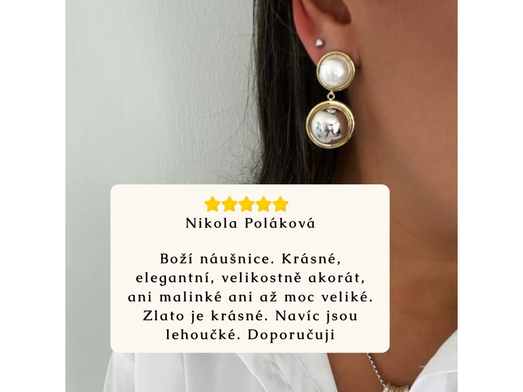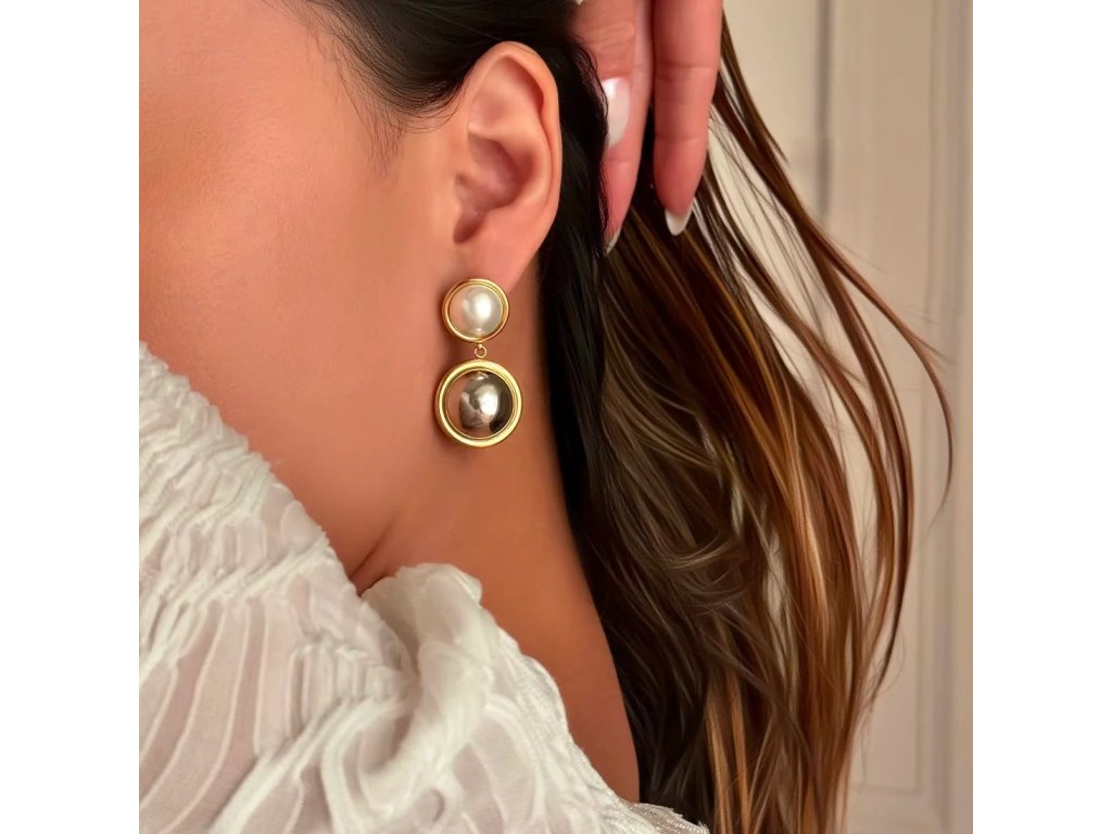 Perlový detail & zrcadlový lesk – ikonické náušnice pro večer i den.