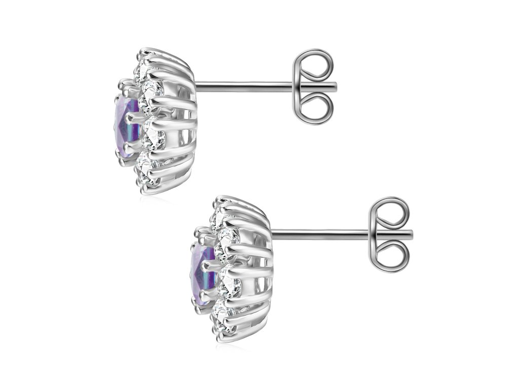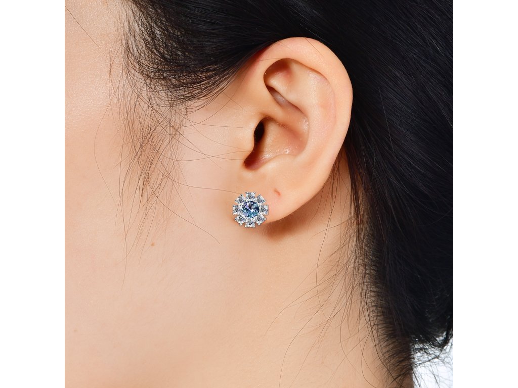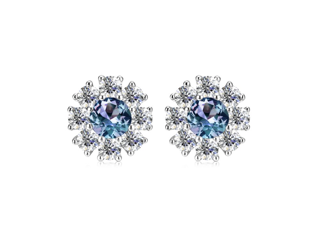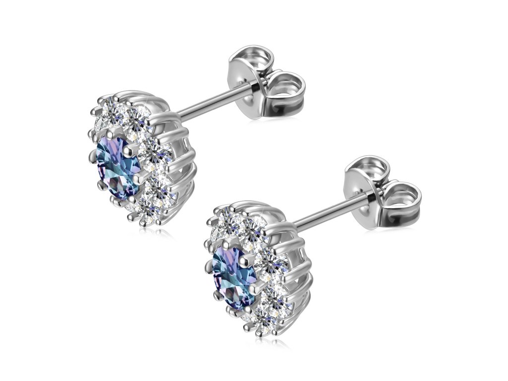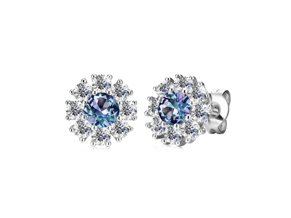 - Hypoalergení stříbrné peckové náušnice pozlacené 18 karátovým bílým zlatem zdobené Alexandritem a zirkony. Originální design náušnic, kvalitní zpracování a materiál, ručně dohotovené.