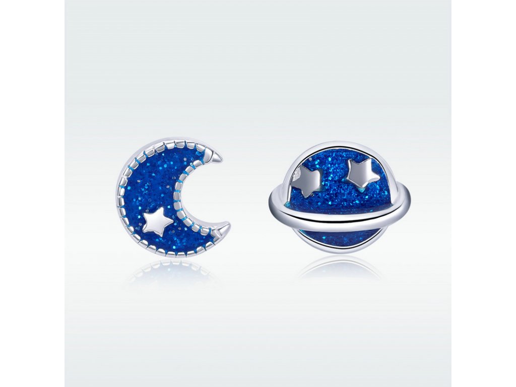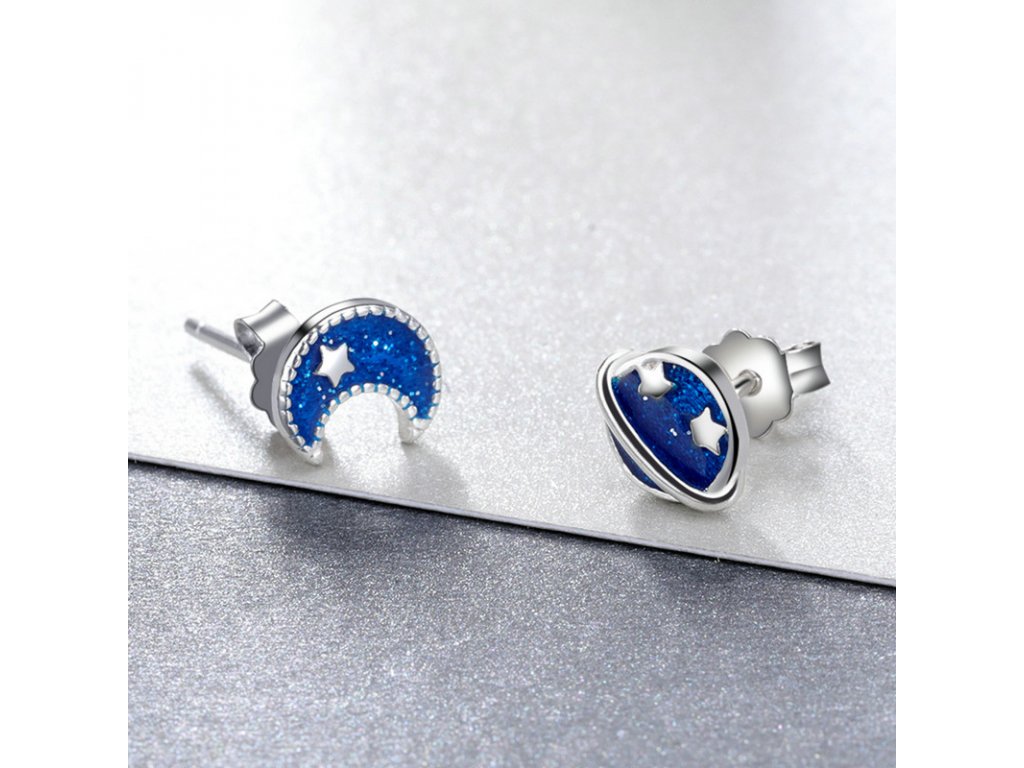 Luxusní a propracované peckové náušnice v designu krásného vesmíru zdobené glazurou.