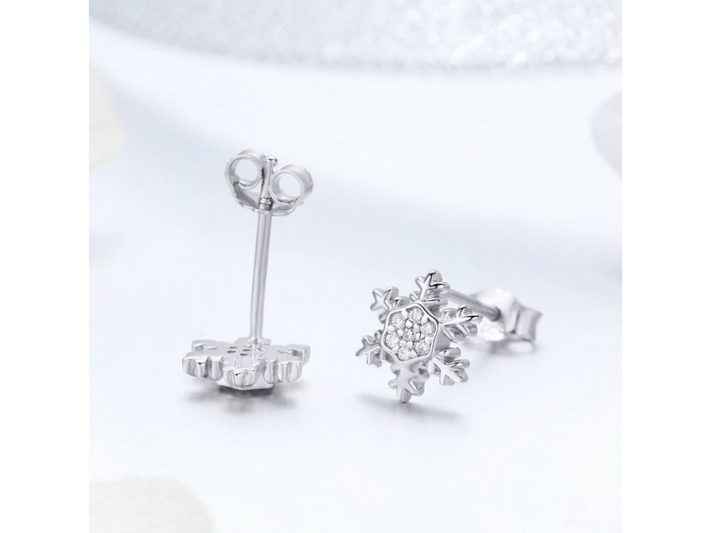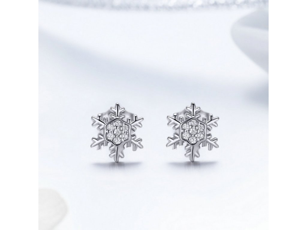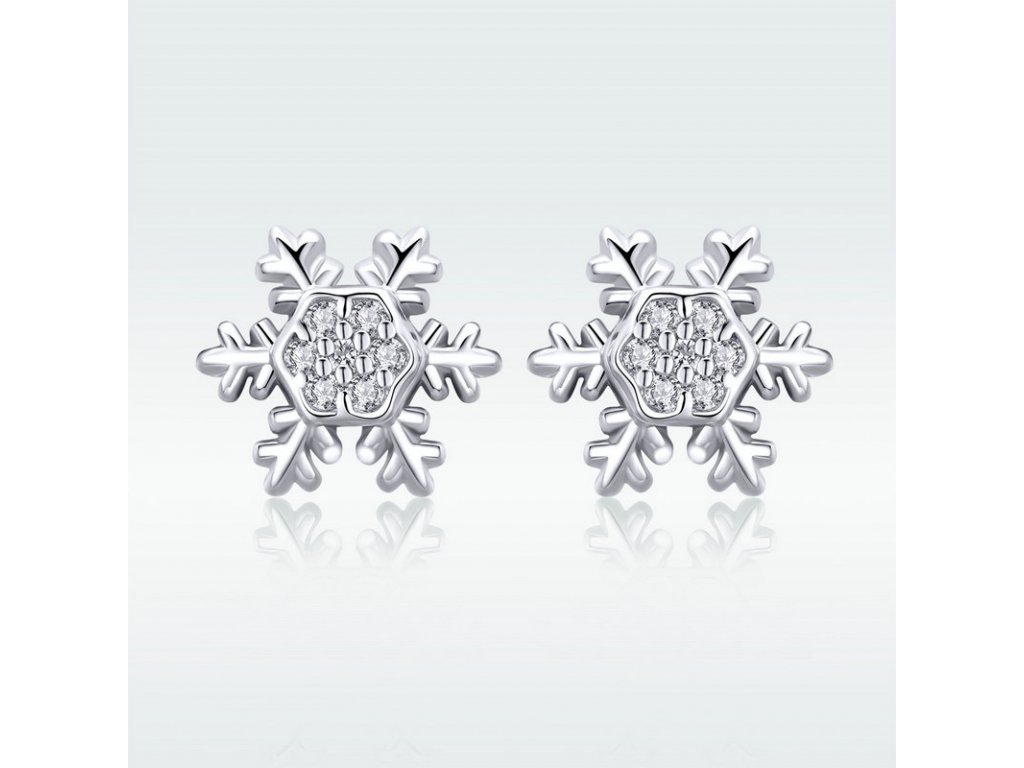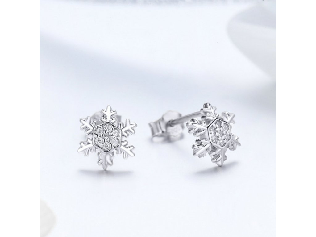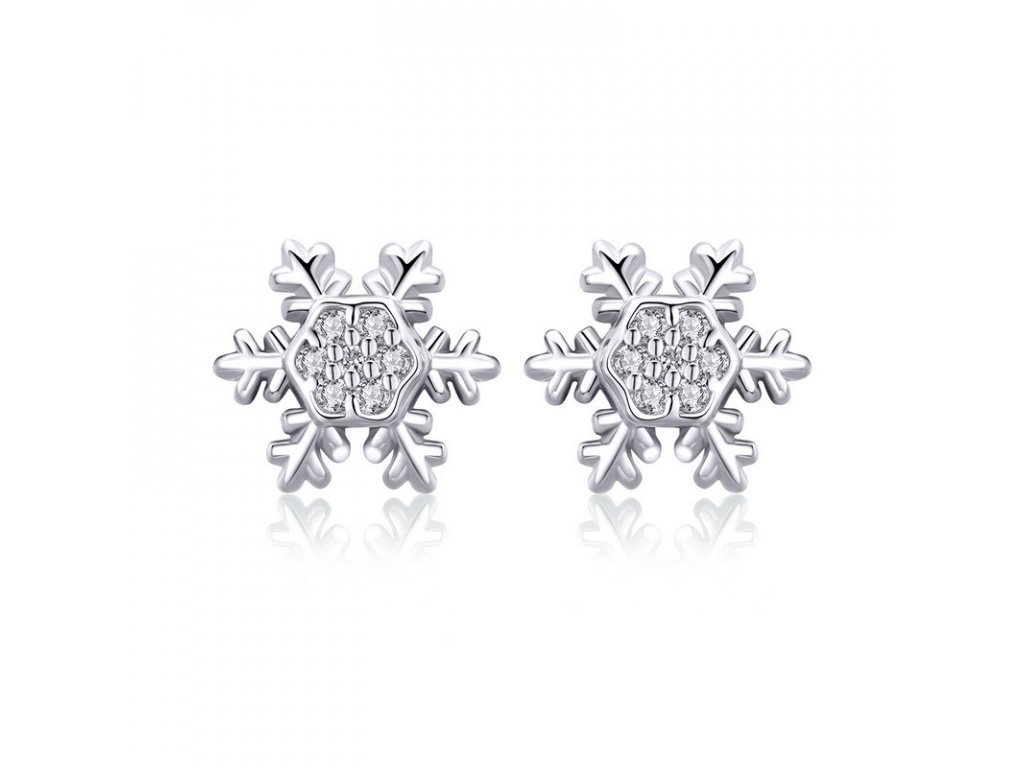 Luxusní a propracované stříbrné náušnice v designu křišťálové vločky zdobené zirkony.