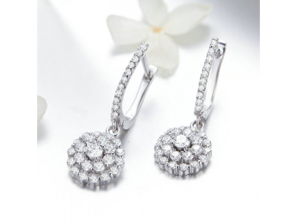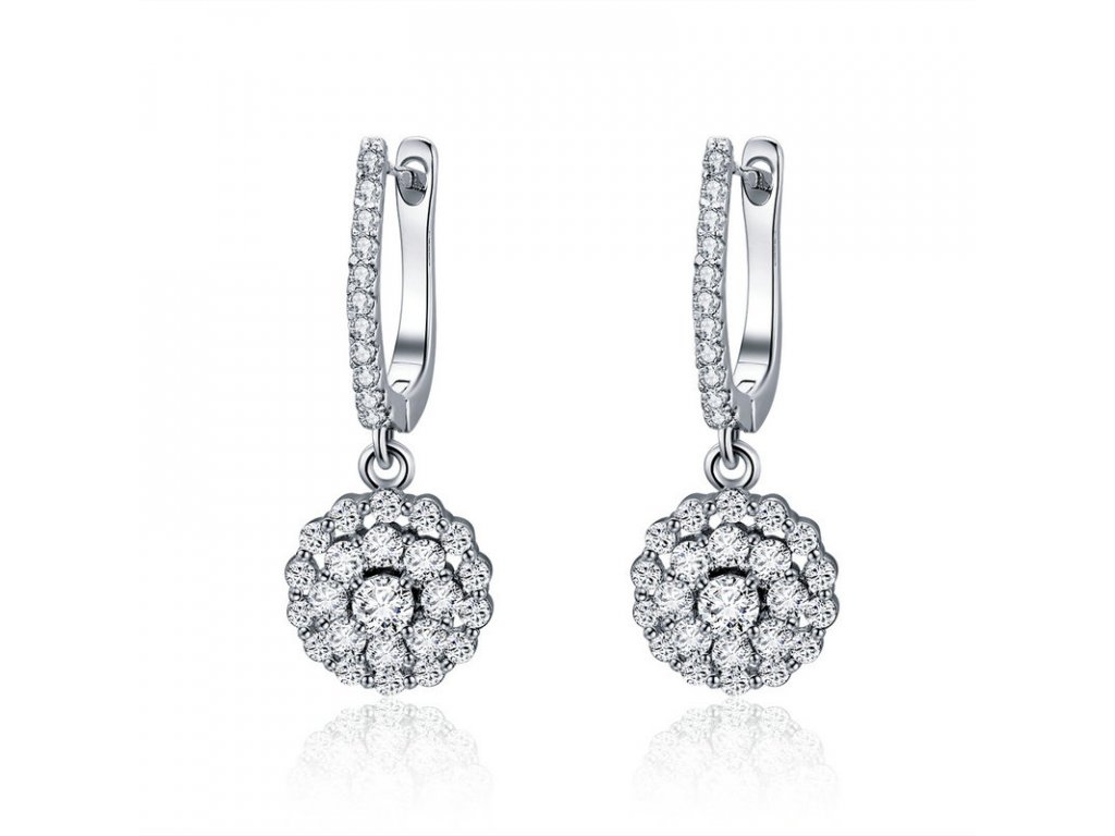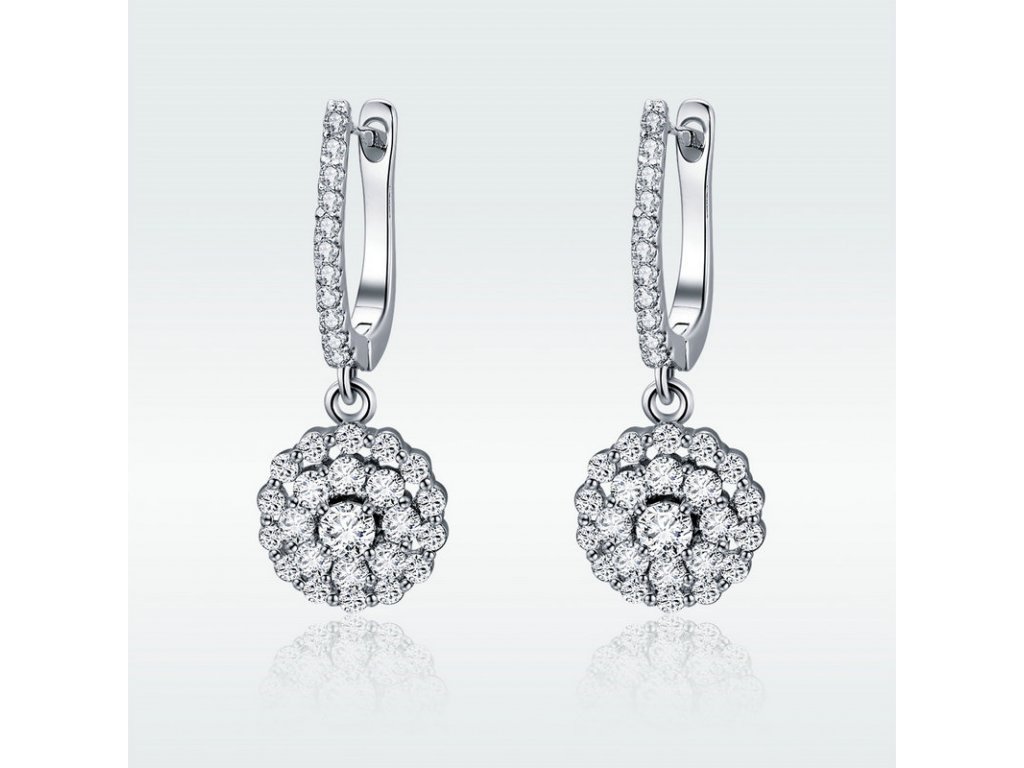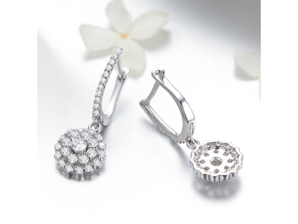 Elegantní stříbrné náušnice v designu křišťálového květu s ručně posázenými třpytivými zirkony. Originální design náušnic, kvalitní zpracování a materiál, ručně dohotovené.