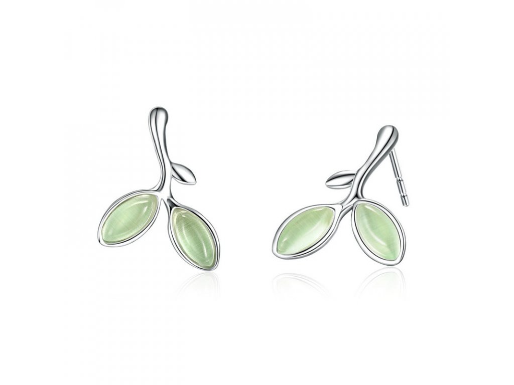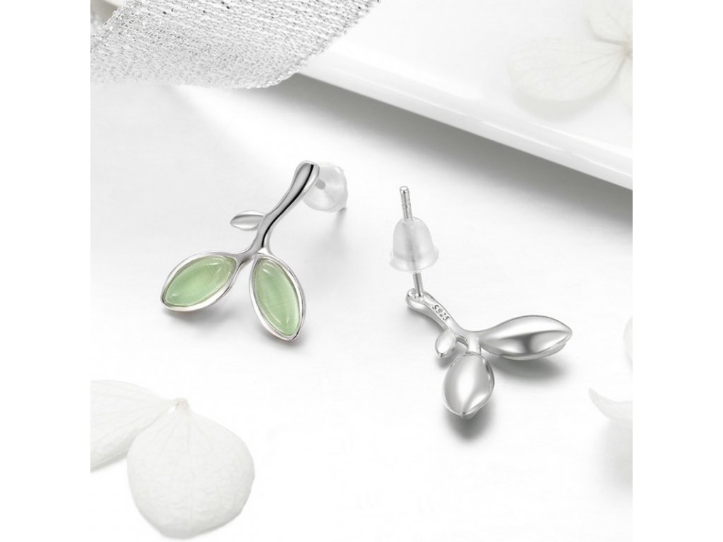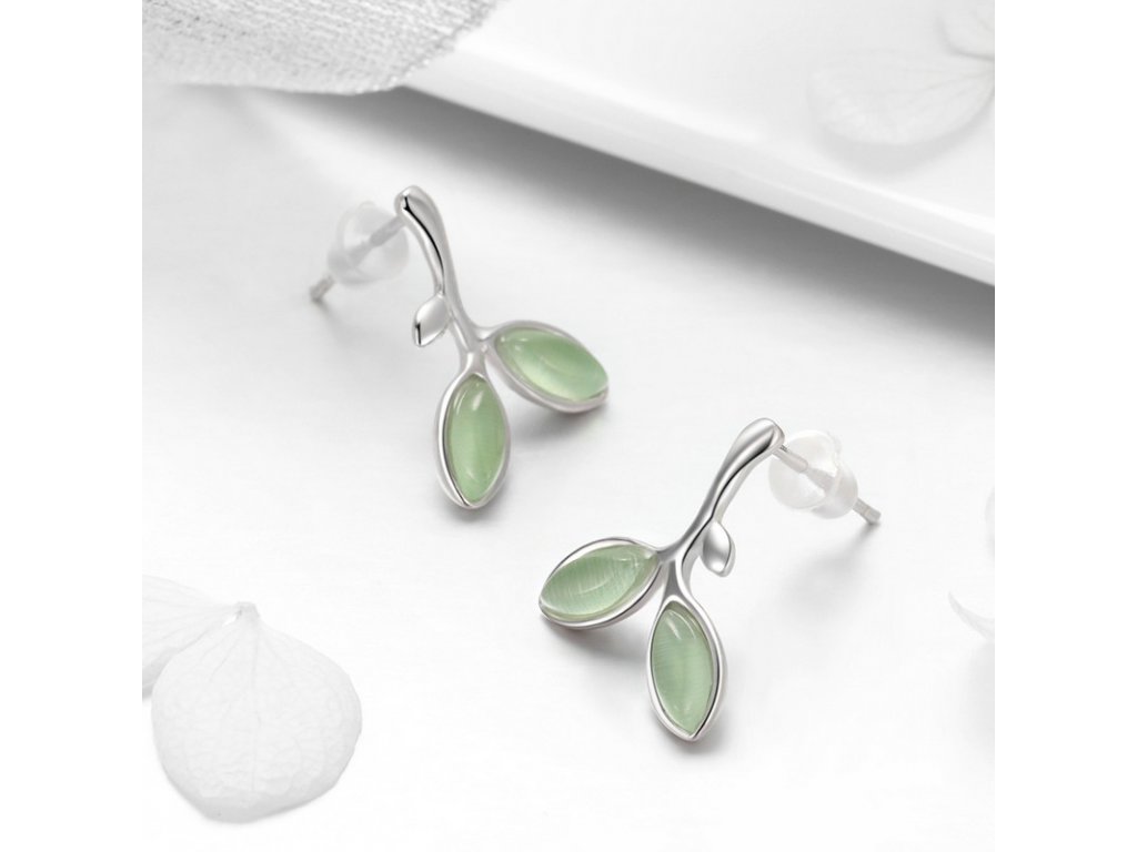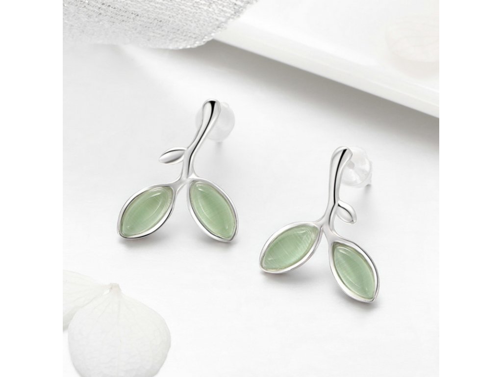 Luxusní a propracované stříbrné náušnice v designu nádechu přírody zdobené opálem.