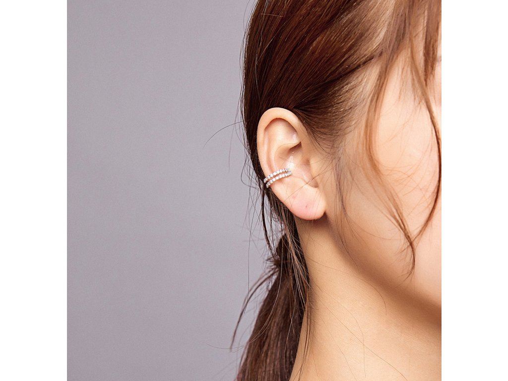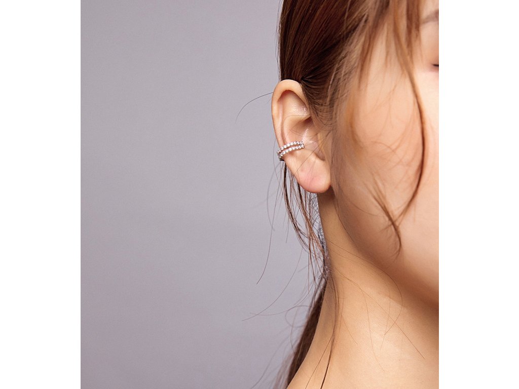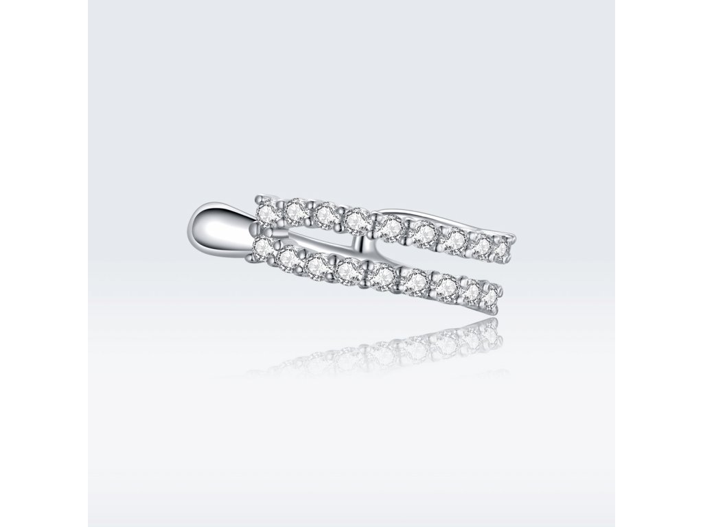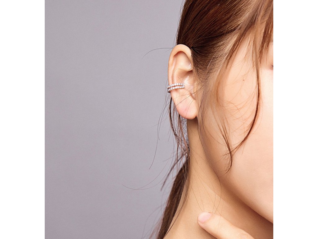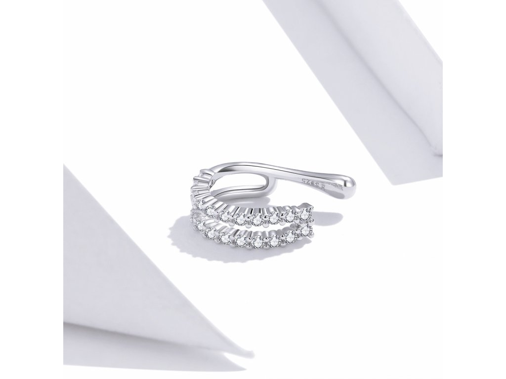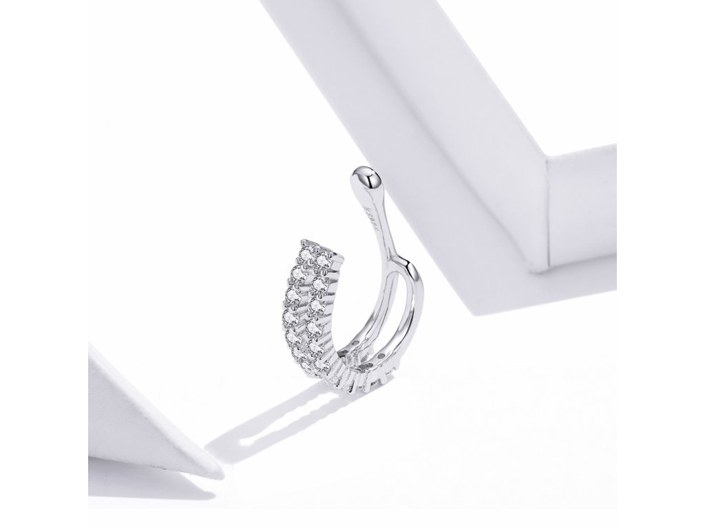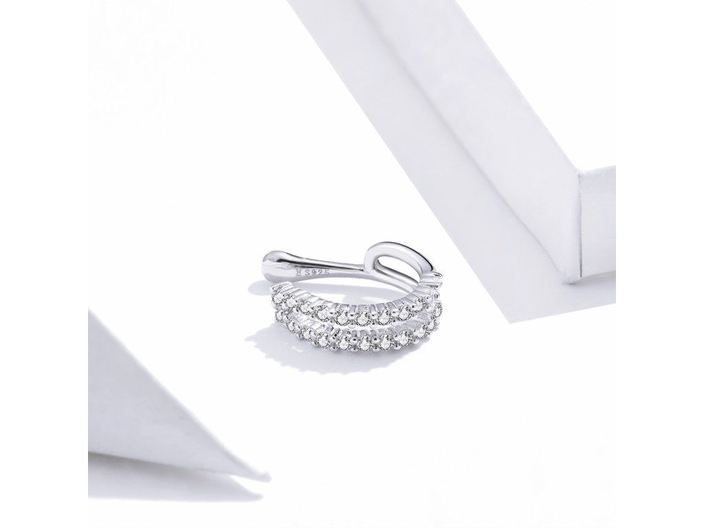- Stříbrná náušnice nebo-li záušnice přes ucho v designu Oslnivého třpytu v podobě třpytivých čirých zirkonů. Originální design náušnice, kvalitní zpracování a materiál, ručně dohotovené.