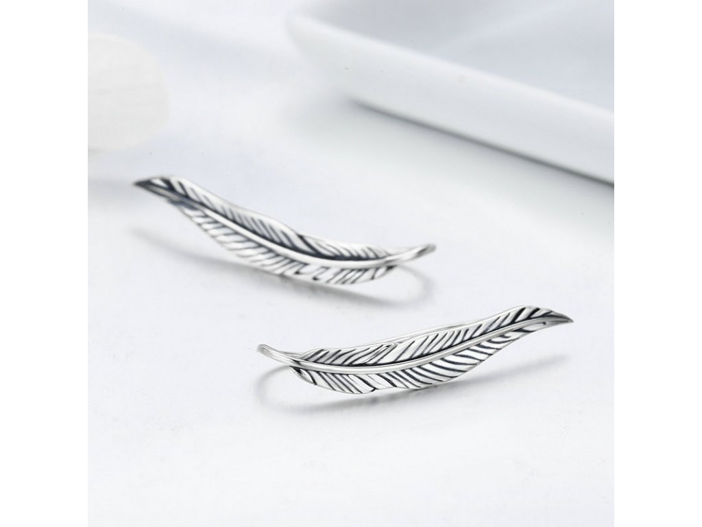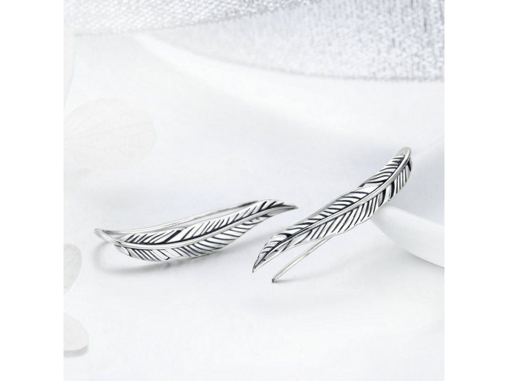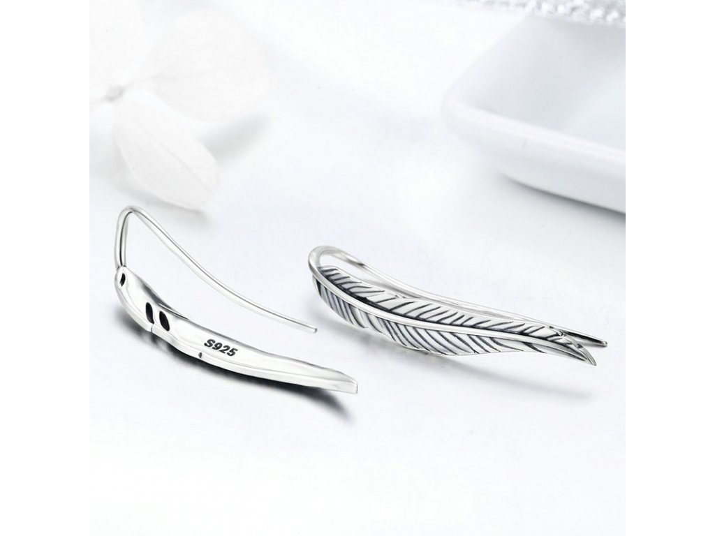 Náušnice přes ucho z kvalitního stříbra v designu půvabných a propracovaných lístků. Originální design náušnic značky Royal Fashion, luxusní zpracování, kvalitní materiál, ruční práce. Rozměry: (šířka x výška) 0.5 cm x 2.9 cm. Materiál: pravé stříbro kvality 925