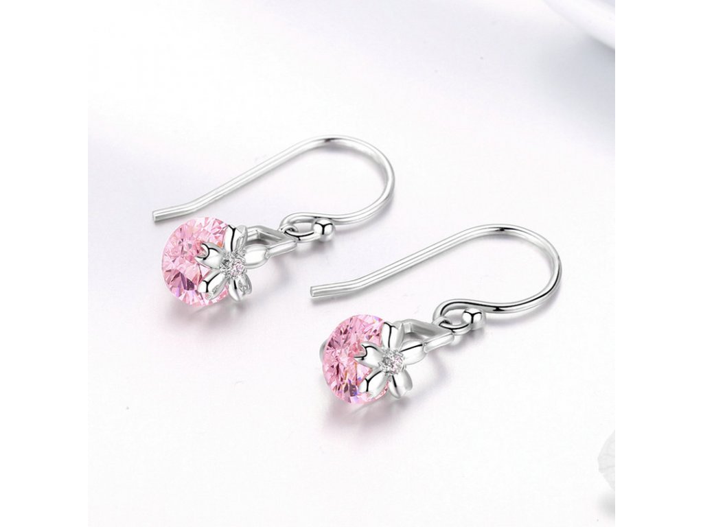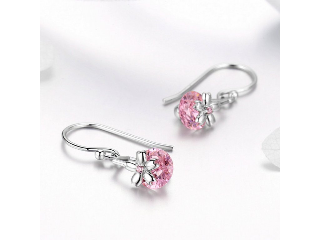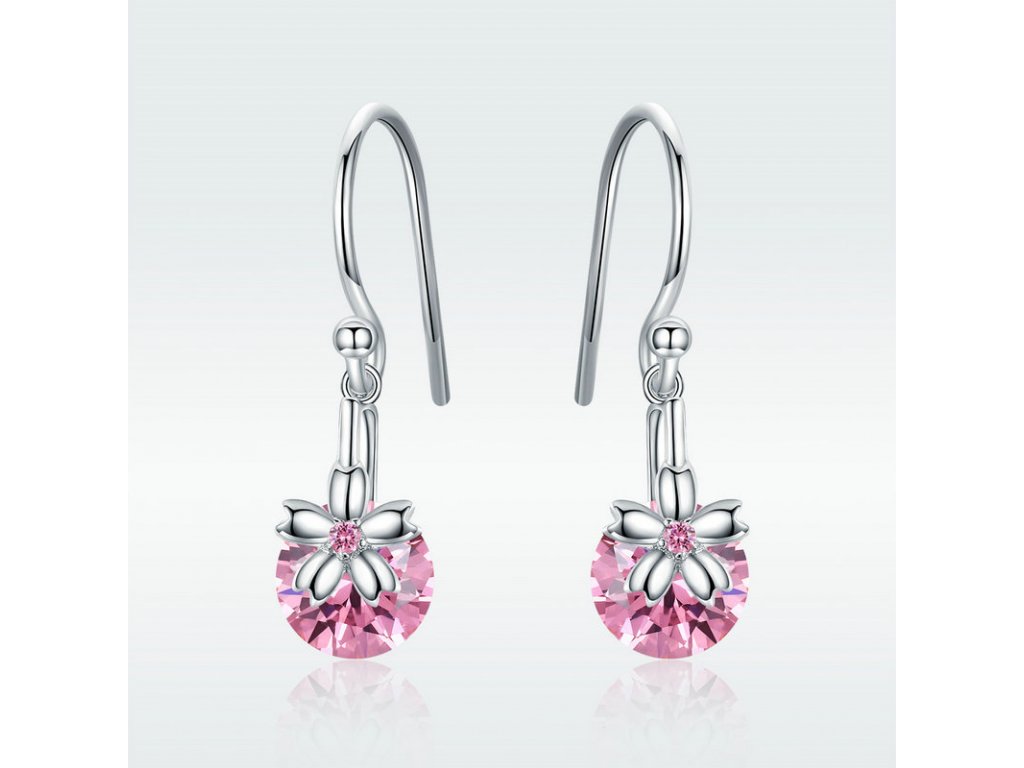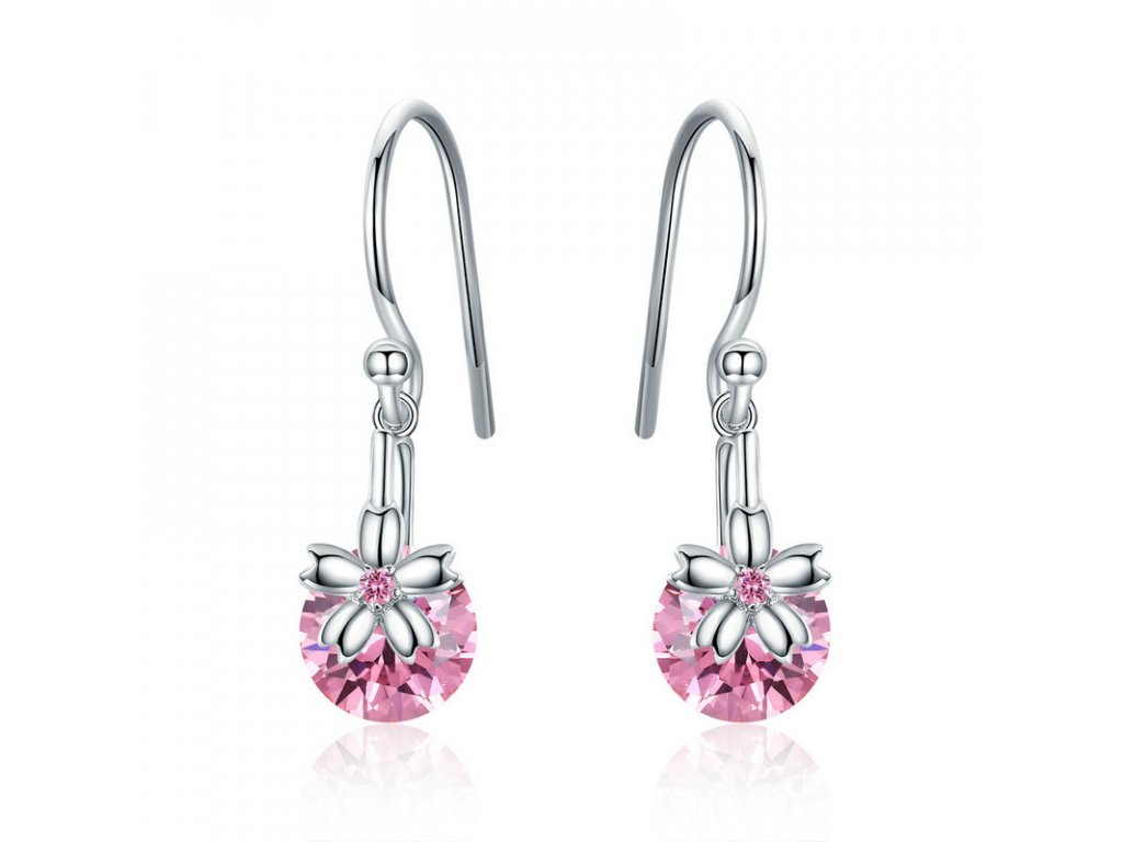 Luxusní stříbrné náušnice romantické sakury zdobené broušeným zářivým kamenem v podobě růžového zirkonu. Originální design náušnic, kvalitní zpracování a materiál, ručně dohotovené.