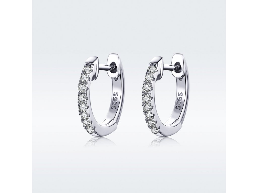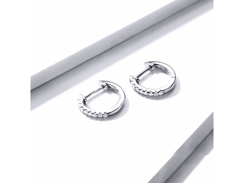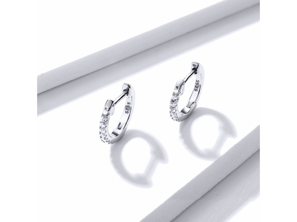 - Stříbrné náušnice v designu Třpytivých kroužků zdobených čirými zirkony. Originální design náušnic, kvalitní zpracování a materiál, ručně dohotovené.
