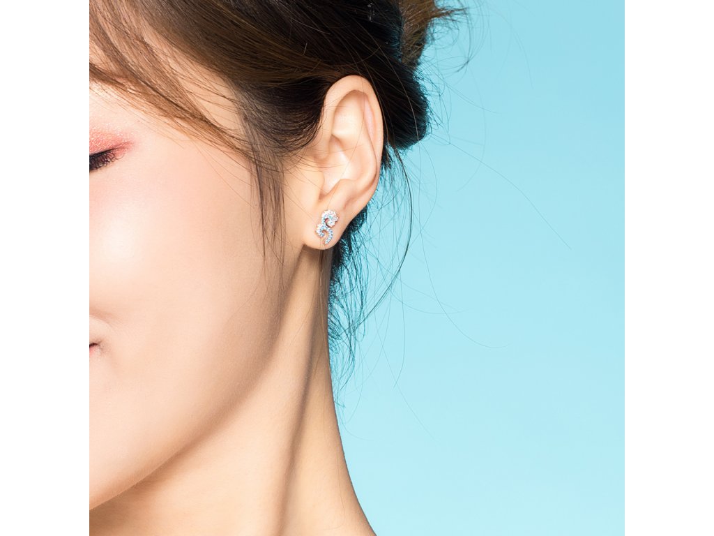 Stříbro 925/1000, zirkony. Rozměry: (výška x šířka) 0.7 x 1.1 cm