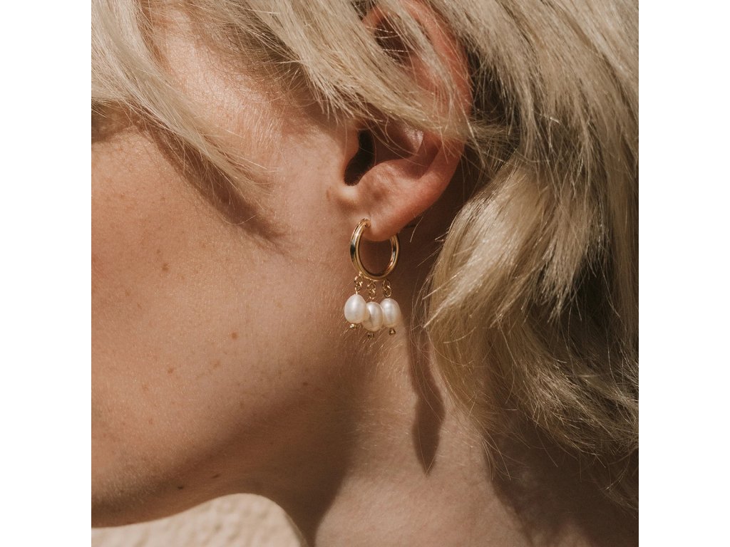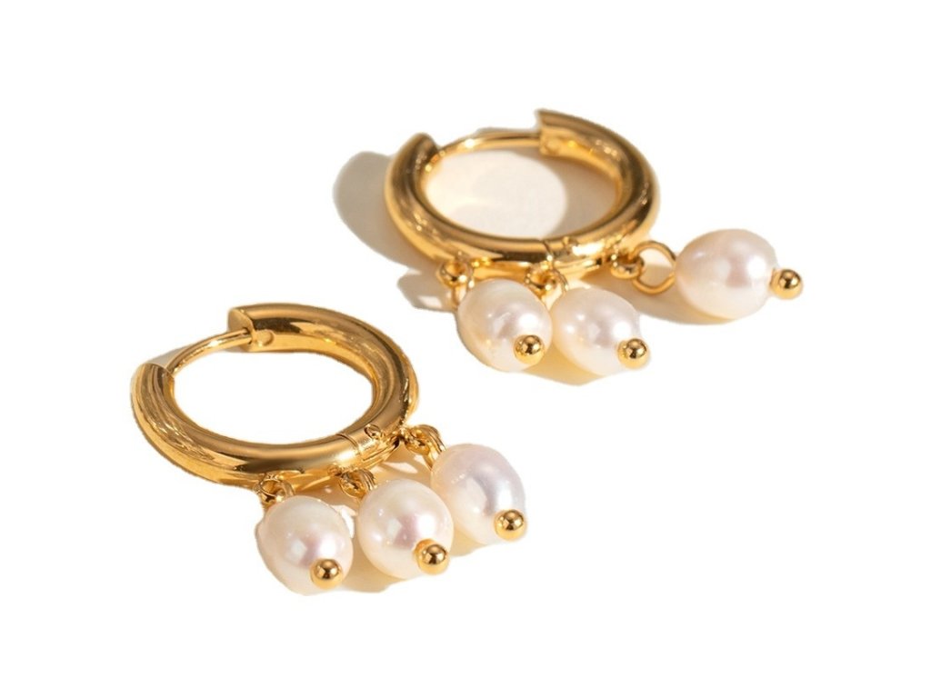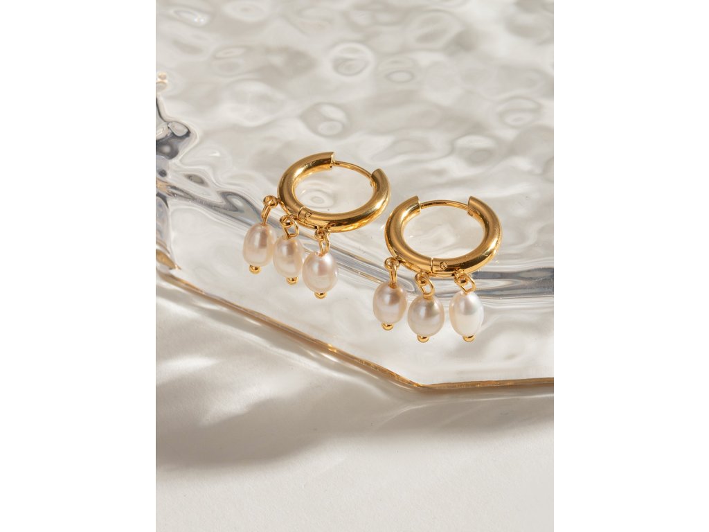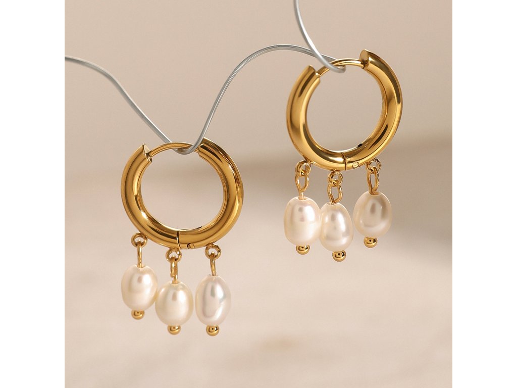Tři jemné perly na zlatých kroužcích – drobný detail, který rozzáří každý look.